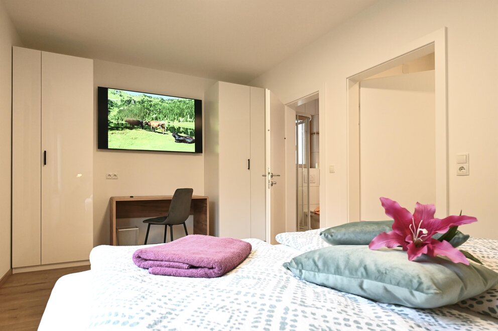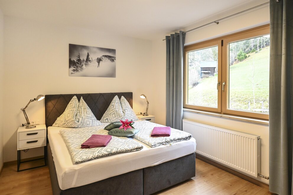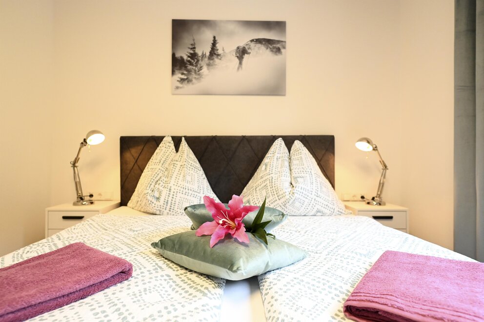 Apartment in a quiet place with a separate entrance. 20min walk to the center of Schladming. There is a parking space and a bus stop right next to the apartment. The apartment consists of 2 double bedrooms, each with its own bathroom/toilet and a kitchen-living room. The living room is equipped with a pull-out couch on which 2 people can sleep with access to the bathroom/toilet.