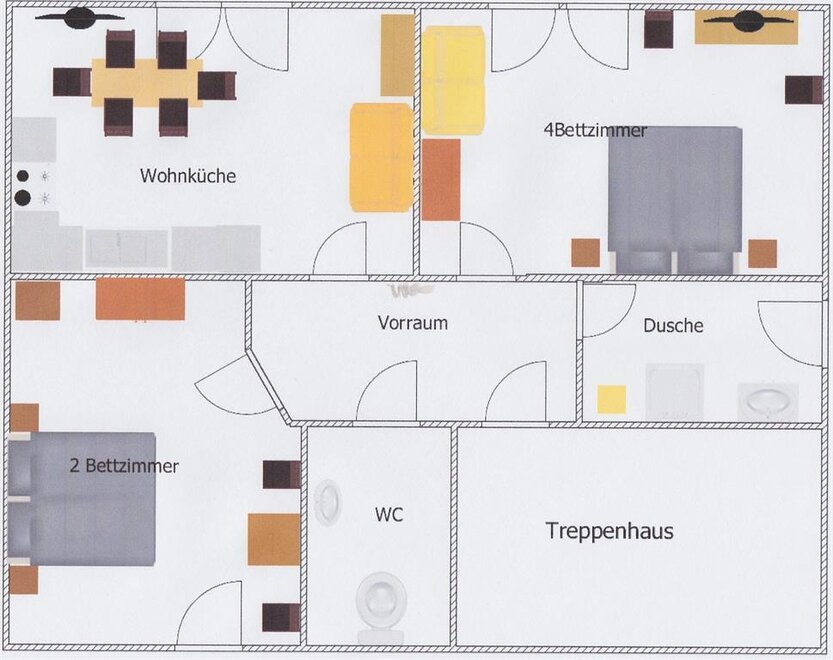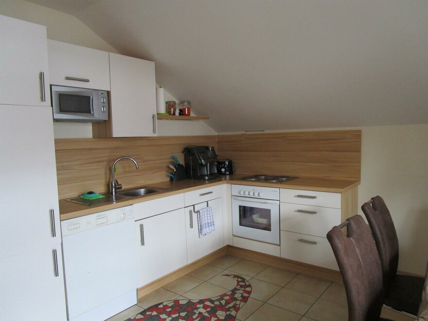 Our apartment consists of a very spacious kitchen. It is fully equipped with dishes, microwave, dishwasher, electric stove with oven, coffee maker, kettle, egg cooker, blender, toaster and fridge freezer and a TV with satellite connection. 1st bedroom for 2 persons and 2nd bedroom with sofa bed for max. 4 people. SUMMER CARD PARTNERS.