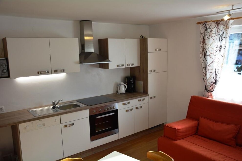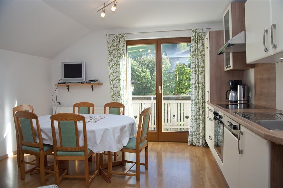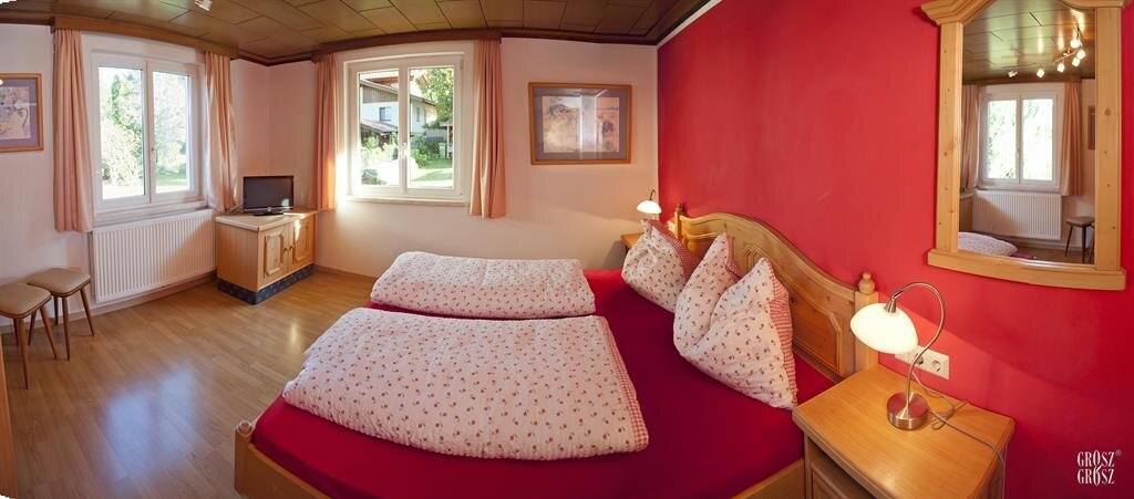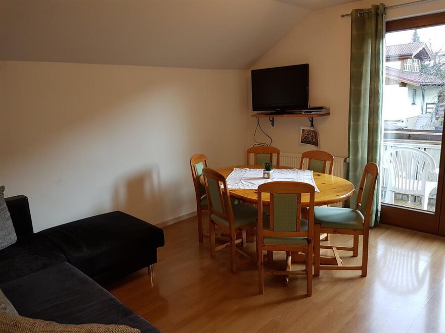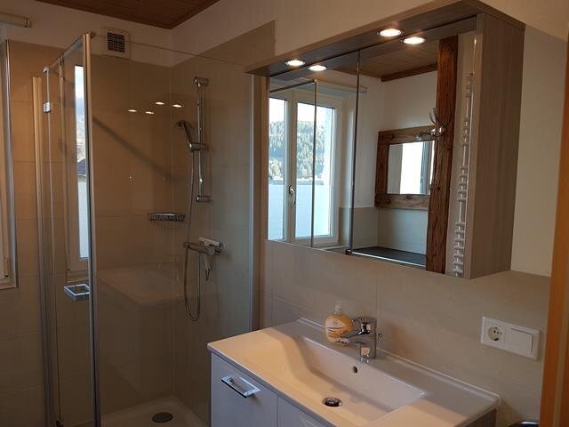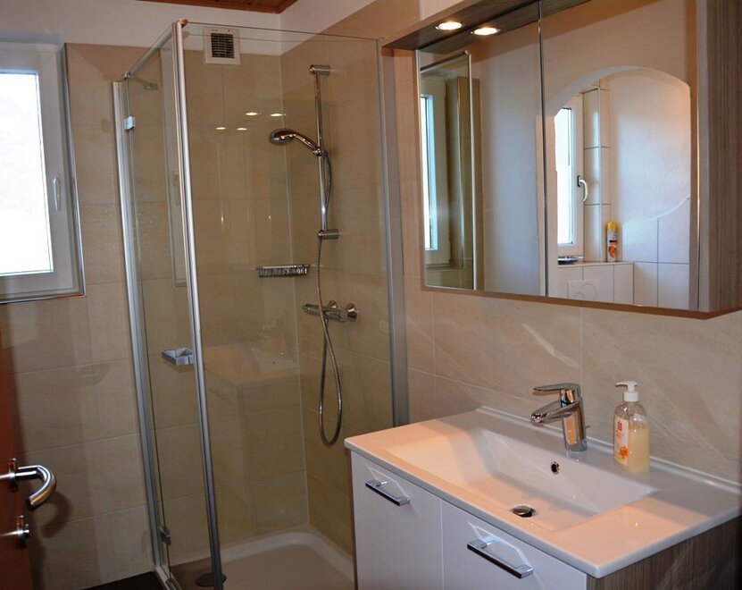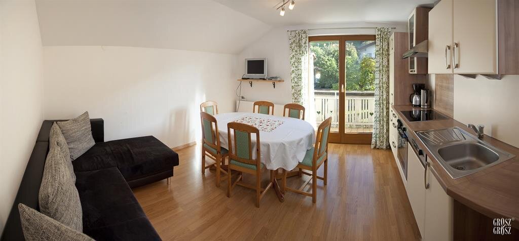 Our apartment on the upper floor offers two double rooms. The living room on the upper floor also offers enough space for cozy evenings with a balcony on the garden side and a view of the FIS valley run. Furthermore, both living units are equipped with bath / WC, shower and W-LAN.