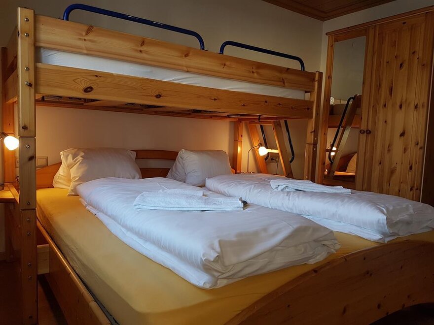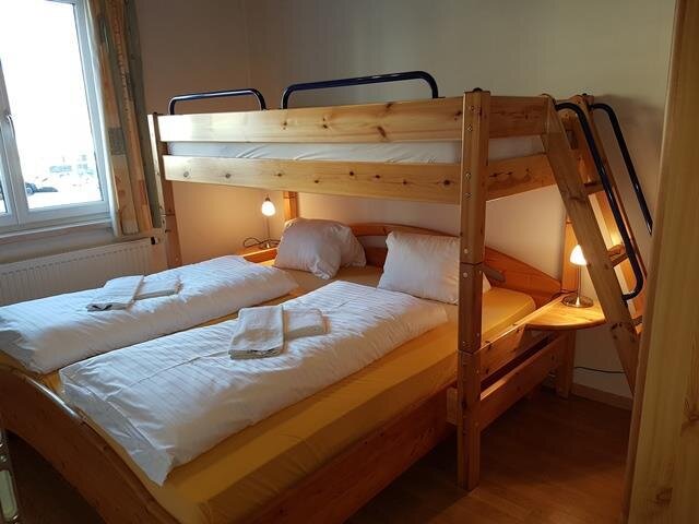 We live in two lovingly furnished apartments. Our ground floor apartment has a double bedroom and a room with a bunk bed. For a cozy get together, our living room offers enough space for great family nights.