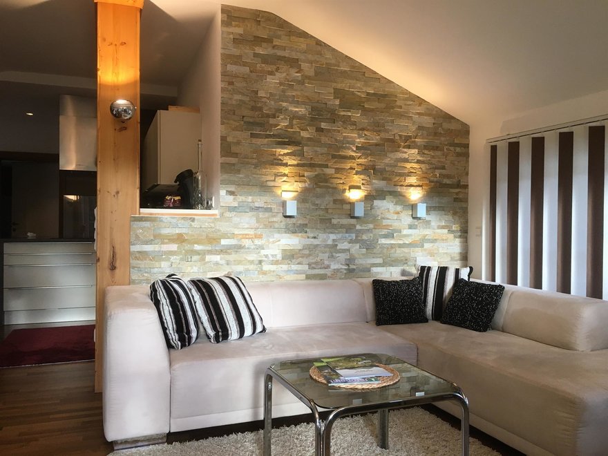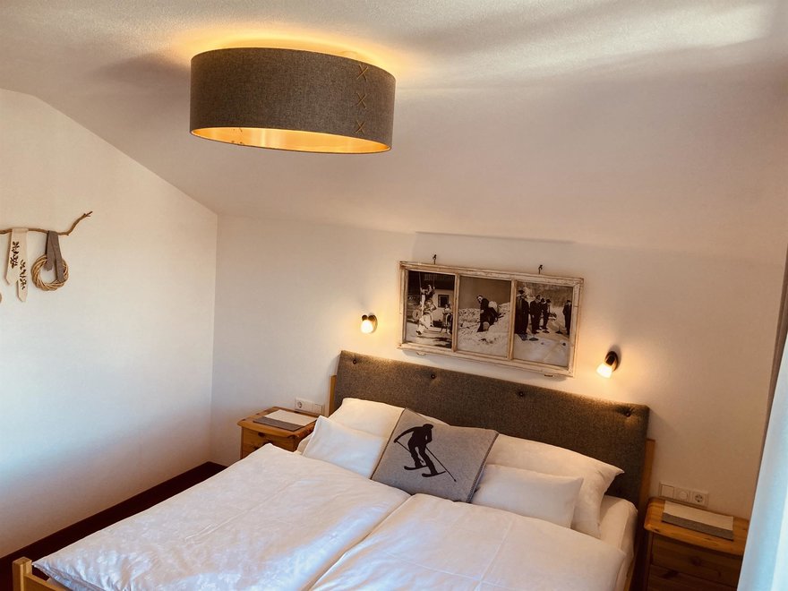 The cozy apartment Hansl with approx. 55m2 has 1 bedroom with double bed, anterroom, 1 kitchen-living room with couch, TV and tining table. The kitchenette itself is equipped with oven, stove, refrigerator, microwave, etc. , 1 bathroom with shower and washing machine and extra toilet (see floorplan at the pictures). The cozy apartment Hansl convinces with its southfacing balcony and the view of the Sattelberg. In addition, the apartment has a seperate entrance, private parking as well as ski- and bikeroom. An additional room with own bathroom can on request booked to the apartement too.