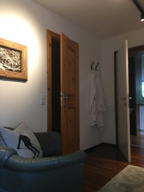 An additional room with own bathroom can be booked on request. In addition, the apartment has a separate entrance, its own parking space and skiroom.