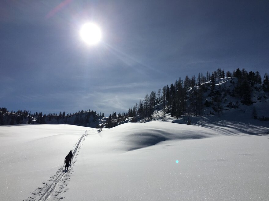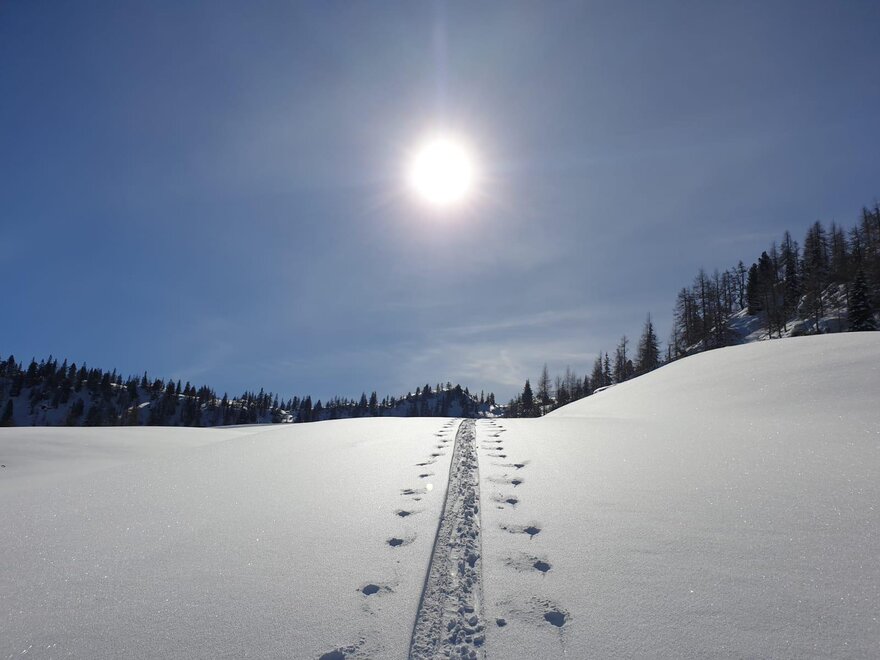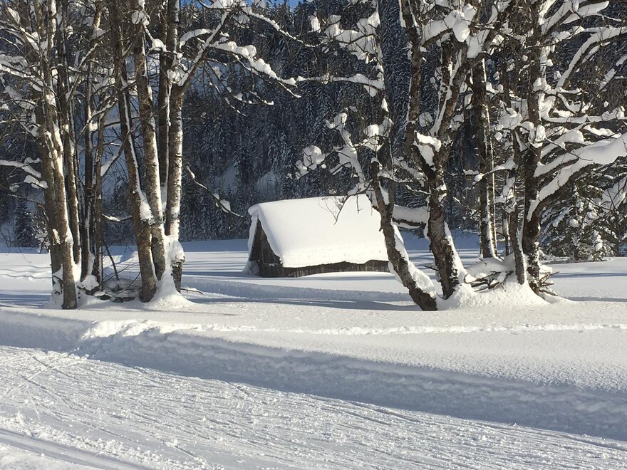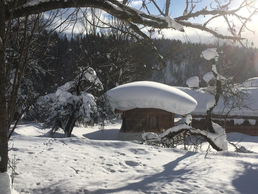 In winter, the cross-country skier's heart beats faster in Ramsau, our guests enter the perfectly groomed 220km cross-country ski trail network directly at the house. Skiers reach in only about 10 minutes to the ski region Ramsau, the Dachstein glacier or the famous Schladminger 4 mountain ski area with the Hauser Kaibling, Planai, Hochwurzen and Reiteralm. The ski bus stop is only 50 m from the house. The wide winter hiking trails as well as untouched landscapes also invite you to take a leisurely winter and snowshoe hike as well as a ski tour or horse-drawn carriage ride right outside the front door.