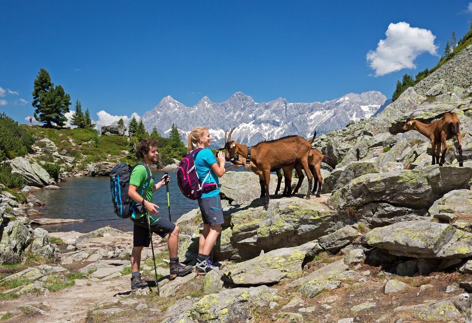 Also in summer there is a lot to experience, with about 1000 kilometres of hiking and biking trails, via ferrata, numerous water and family experiences as well as managed alpine pastures our holiday region shows itself to be versatile. Enjoy the ideal starting point, directly on the hiking trail, to the Silberkarklamm gorge, family excursion destination Sattelberg, Lodenwalke Ramsau, Königsetappe Ramsau as well as to numerous fixed rope routes. The Summer-Card is inclusive - with more than 100 attractions for free.