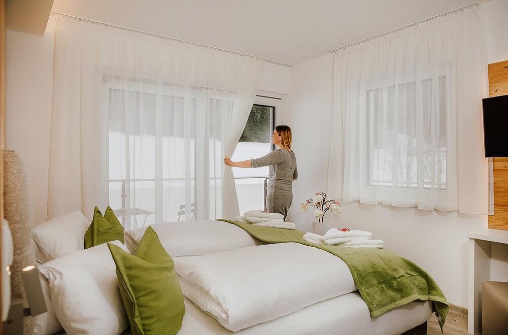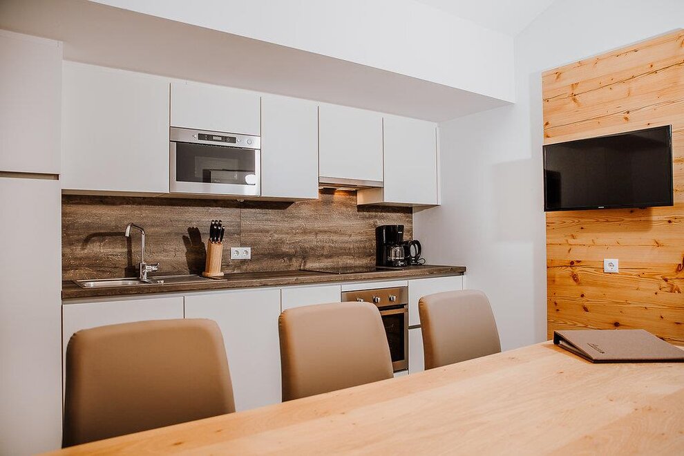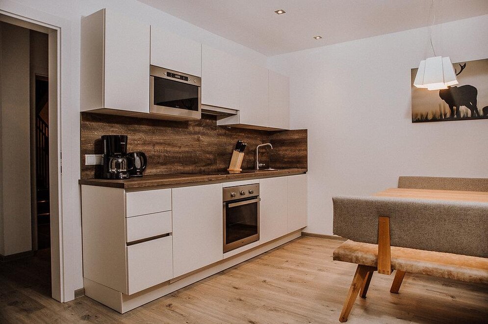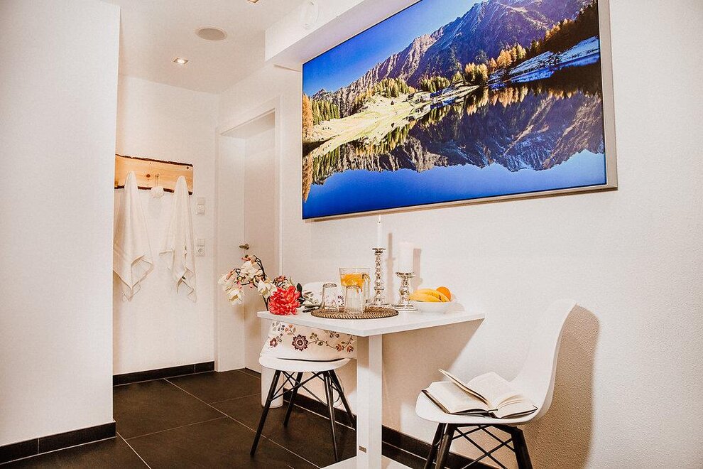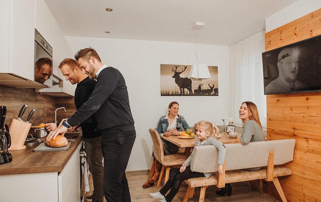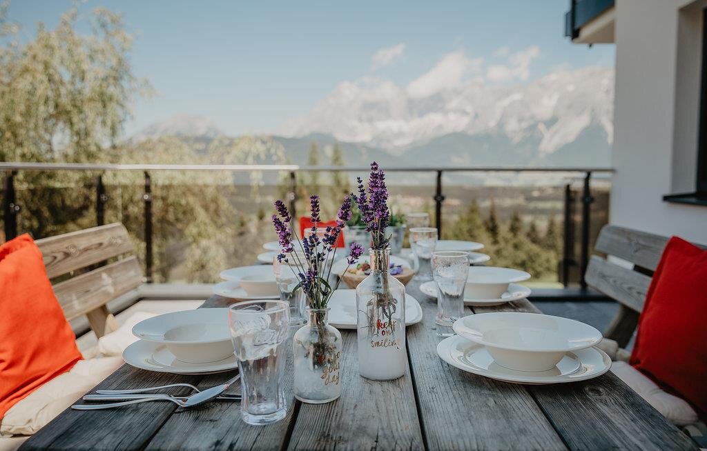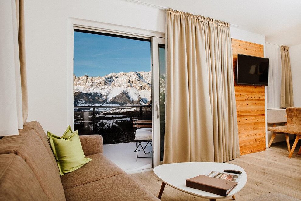 Our apartment house Almnest has modern design with balconies made out of glass and big window fronts, but also traditional with a wooden outside front. All apartments have at 2 balconies or a terrace to enjoy the amazing view of the slopes and the glacier Dachstein. It's very important for me to provide a modern yet still cosy atmosphere in all our apartments.