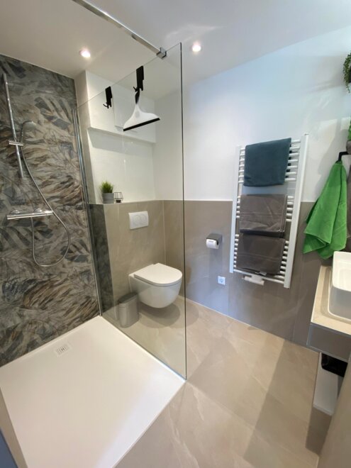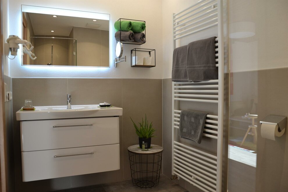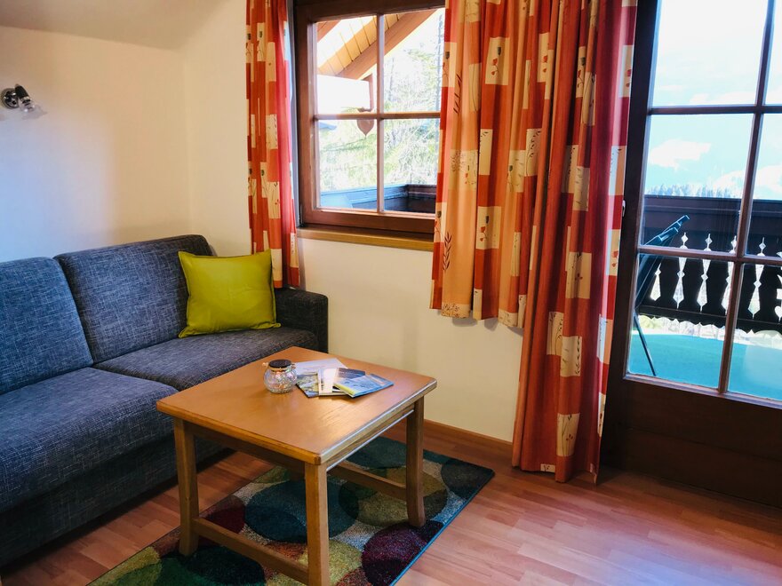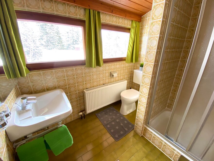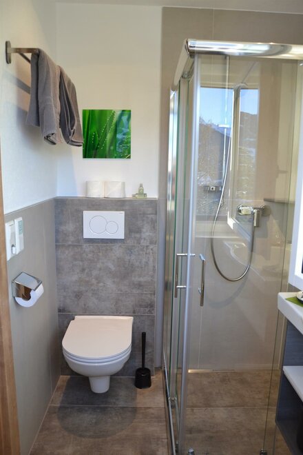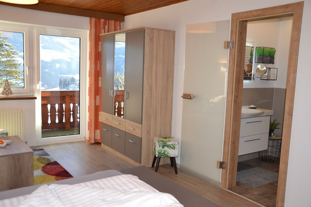 The smaller 62m2 apartment "Ramsau", which offers place for up to 4 people, has a double bedroom with couch, a living-bedroom, 2 bathrooms with a shower and WC, as well as 2 balconies. On the north side of the house is a breathtaking view of the Dachstein mountain range, on on the south side one can see the slopes of Planai, Hochwurzen , and Hauser Kaibling.