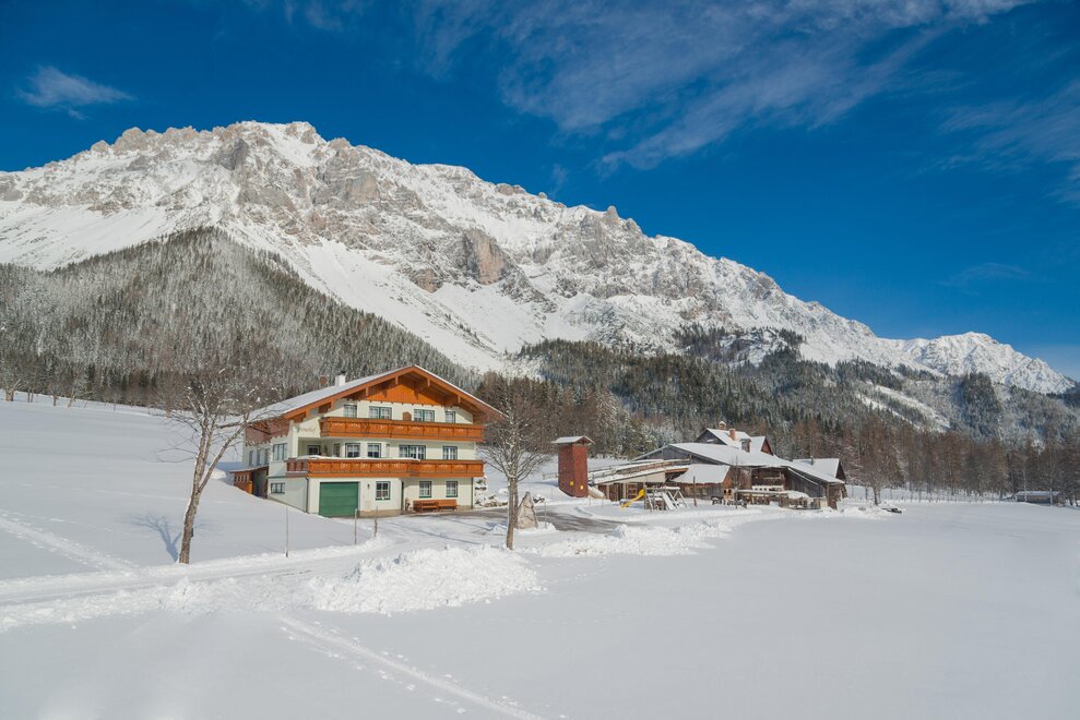 Arrive and feel at ease, leave the stress behind you and escape at the 4**** Pernerhof Pension-Apartments, your Ramsau am Dachstein holiday home surrounded by breathtaking scenery. A short car ride takes you to the centre of Ramsau am Dachstein with a supermarket, restaurants, and shops, and a gentle stroll gets you to restaurants nearby. Pernerhof lies in the middle of the Ramsau am Dachstein holiday region, making it the perfect starting point for hikes, via-ferrata tours, and all manner of mountain bike tours for all abilities. Located in Austria’s largest ski area, Ski Amadé, winter is filled with downhill fun, but if you prefer cross-country-skiing or winter-walking, the perfectly groomed cross-country trails and winter-walking paths of the sunny Ramsau am Dachstein plateau are a 2-minutes’ walk away. The Pernerhof holiday flats accommodating 2 - 8 people are bright, tastefully decorated and cosily furnished. With a fully equipped kitchen, 1 or 2 bedrooms, a living/eating room, and bathroom with a separate WC, you are guaranteed a stress-free, relaxing holiday. Ease into the day with freshly baked bread-rolls from our local organic bakery in the mornings - you just have to ask. The double rooms and holiday apartments at Pernerhof are carefully furnished and aim at the well-being of our guests: the double rooms have a balcony, satellite TV, and WiFi and all are ensuite with a separate WC. Enjoy our rich buffet breakfast overlooking a fantastic panorama. All rooms and holiday flats have a balcony to sit back and take in the gorgeous views of the Schladming-Dachstein mountains. On the furnished terrace and the sunbathing area in the garden, you can recharge your batteries while your children play to their hearts’ content at the playground with swing and slide. More relaxation you find in our newly built well-being area with its Finnish sauna, hot tub, heated bench and marble shower. Kick back and complete a great day out! Pernerhof was made famous for being the main film location of the ZDF Television show Die Bergretter (Mountain Rescuers), as Emilie’s home, one of the show’s characters. Our apartment house is right beside this old farmhouse. Besides this main location, there are many more film locations throughout the Schladming-Dachstein region. At Emilie’s farm, you might even have the opportunity to watch some shooting and pick up a couple of autographs from the actors. Ramsau am Dachstein is worth a holiday all year round. The popular Austrian holiday destination offers cross-country skiing, Alpine skiing, walking, hiking, climbing, golfing, mountain biking, horseback riding, paragliding, and much more. You will certainly feel very comfortable at Pernerhof in Ramsau am Dachstein. We look forward to welcoming you! Yours, Iris and Andreas Perner