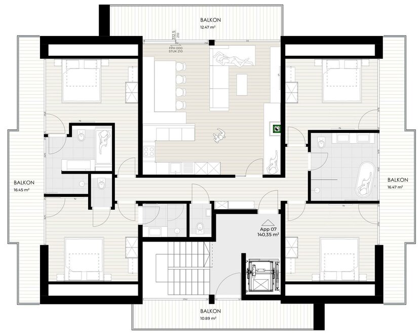Size 140 m² Occupancy 1 - 8 adults , 0 - 9 children Rooms 5 Bedrooms 4 Room details