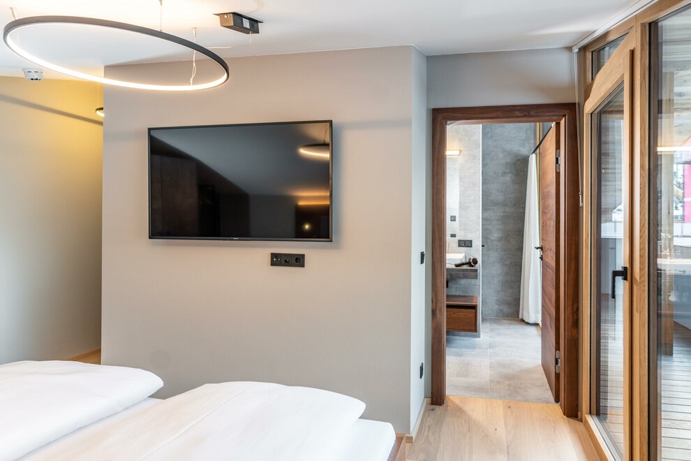 # Bedroom with TV 55 “and room safeLocation/room with view/apartment