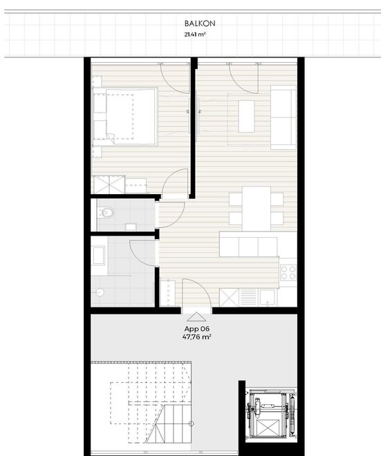 2 to 4 people - 47.50m²# 1x bedroom with double bed
