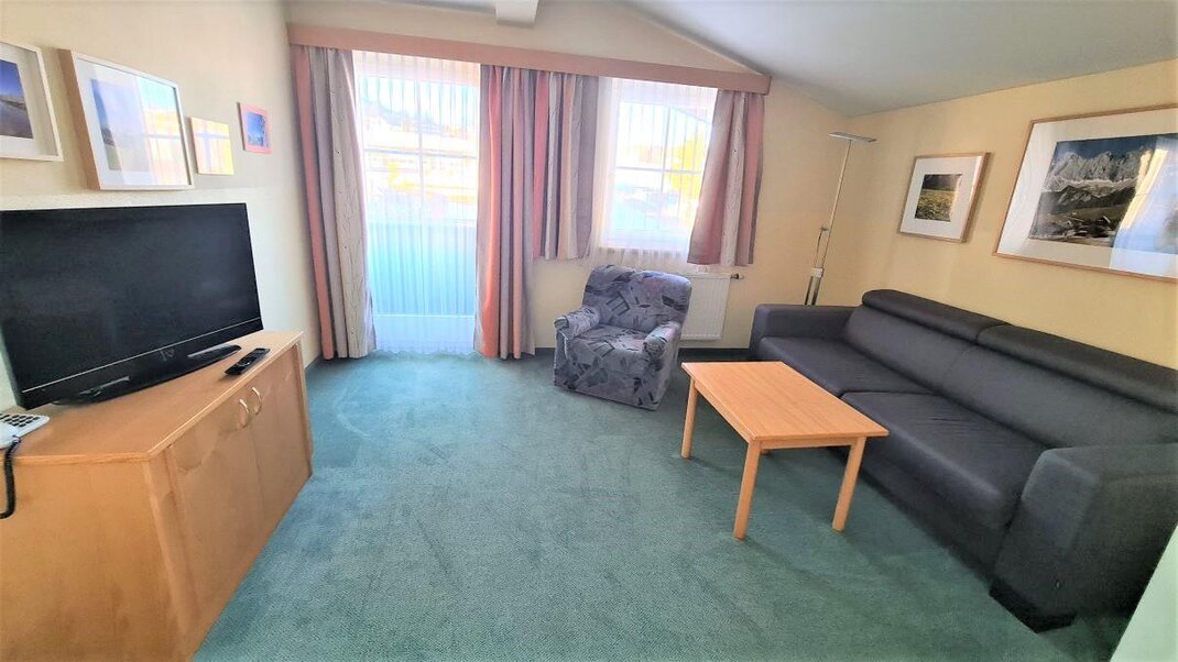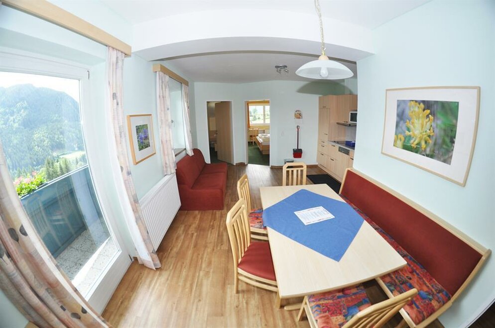 VACATION FOR THE ENTIRE FAMILY IN ANY SEASON! Completely furnished APT from 55-75m², 2-3 bedrooms, comfy kitchen with cozy sitting area, lvg rm, shwr/WC sep. balcony, Breakfast buffet, pub, pizza night, Aqua Vital Island (indoor pool, sauna, steam bath, infrared cabin), kid's play room, ski school pick-up service. WINTER: 5 min. walk to slopes- your car gets a holiday too! SUMMER: in-house kid's program Mon-Fri 9-5, outdoor playground, grill night on terrace, guided hikes with Wolfgang, group outings, Typ A APT "Flowers" 2 bedrooms, 3 rooms, Typ B APT.. Lake: 3 bedrooms, 4 rooms, Typ C APT "Dachstein": 3 bedrooms, 4 rooms, comfort double room, price upon request.