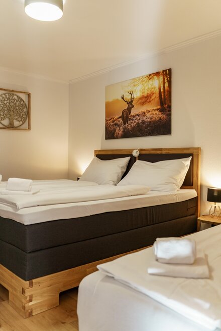 - 1 bedroom with double bed 180 x 200 cm and 1 single bed 90 x 200 cm