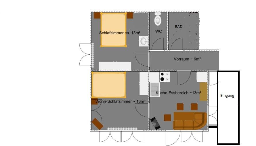 high chair, store room, Größe m²: 55, non-smoking room/apt., furniture suite, island kitchen, closet, separate bedroom/s: 1, pets permitted on request, dishes available, heater, family room/apt., electric stove, anteroom, freezer compartment, cooking possibilities, oven, balcony, central heating, coffeemaker, simple furnishing, refrigerator, TV, dish sink, toaster, microwave, WiFi, use of washmachine, satellite TV, kettle, balcony furniture
