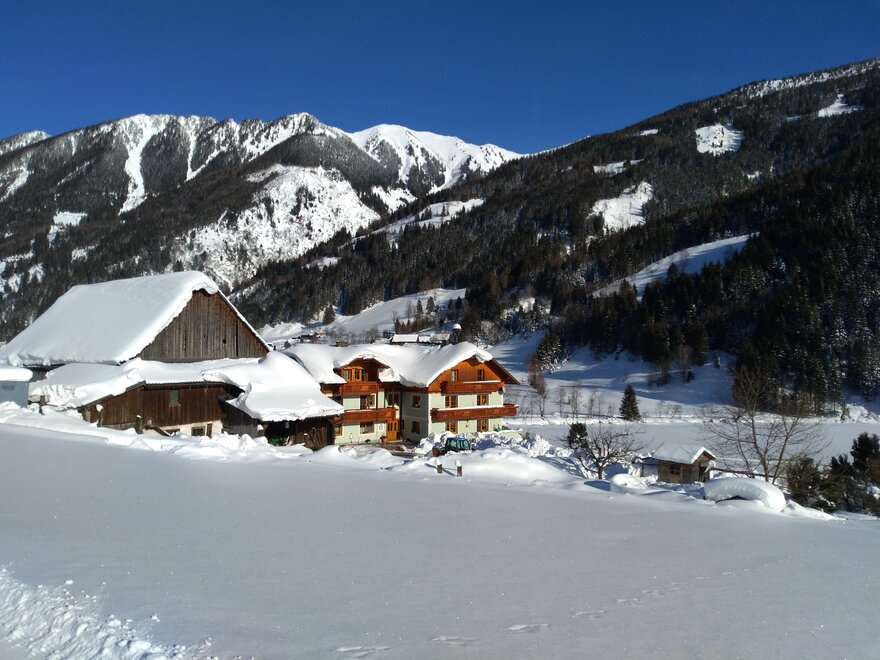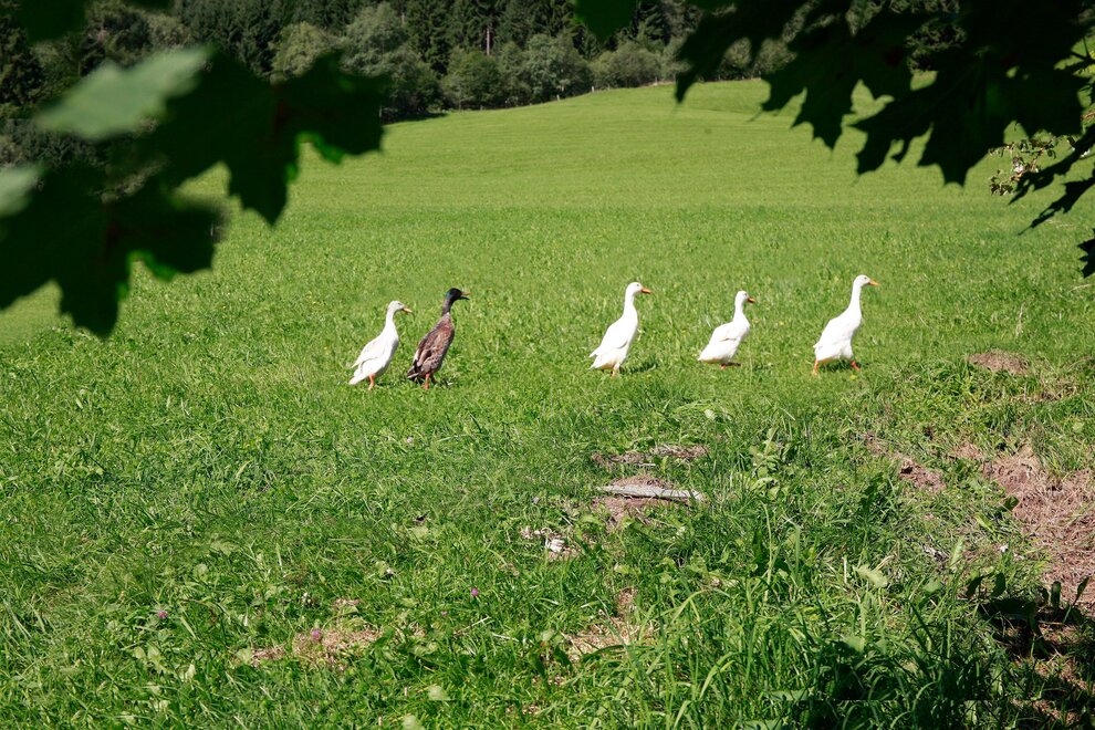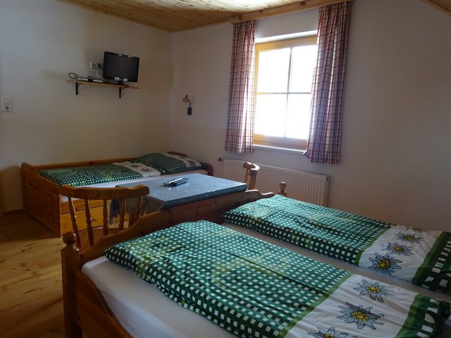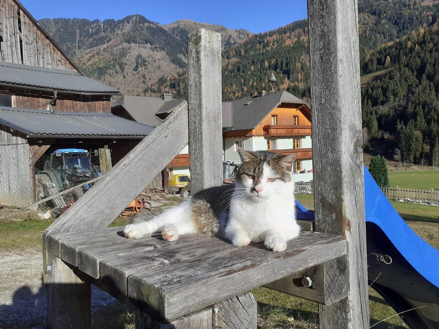 Our ORGANIC FARM enjoys a quiet location with lots of animals incl. cows, pigs, hens, cats, rabbits, ducks and a dog. Boredom is never an issue! On the playground, with playhouse, swing, trampoline, table tennis, sandbox and slides, there’s always something going on. For activities away from here we offer the SOMMERCARD! The lake and recreation area are just 2 km away. In winter, you are a 5-min. drive from the Riesneralm ski area. Also, directly next to the house are a sled run and XC trails. The cosy, rustic vacation APTs invite you to feel at home. We also rent rooms: winter from € 32, summer from € 35 (BB)
