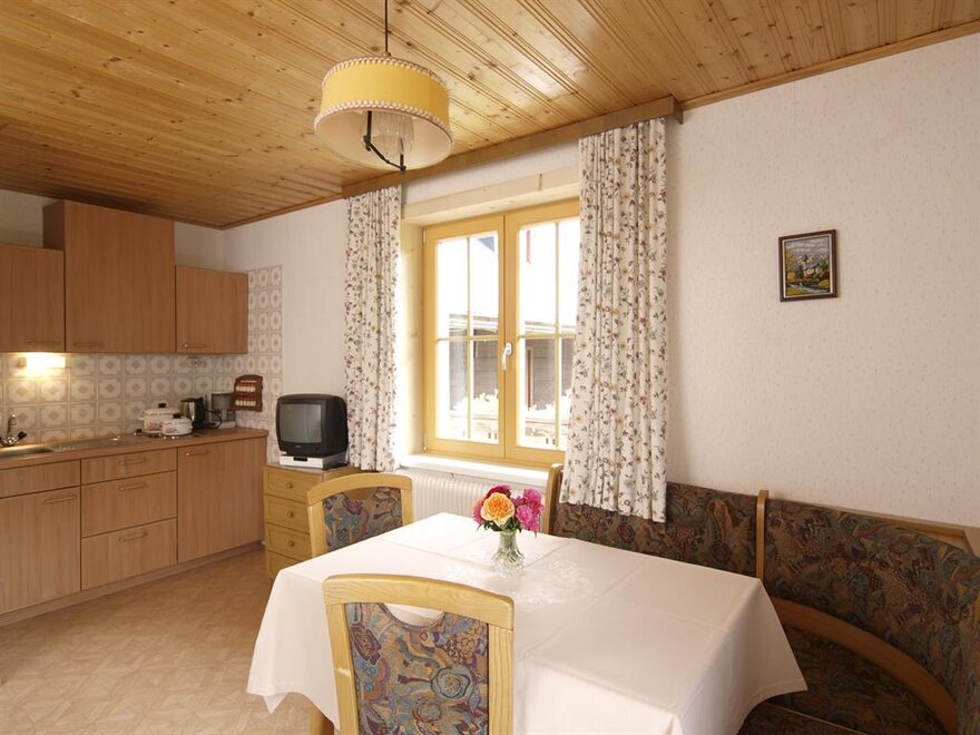 Our pine Appartement offers you 1 sleeping room, kitchen, dining area, bathroom with shower, toilet and balcony.