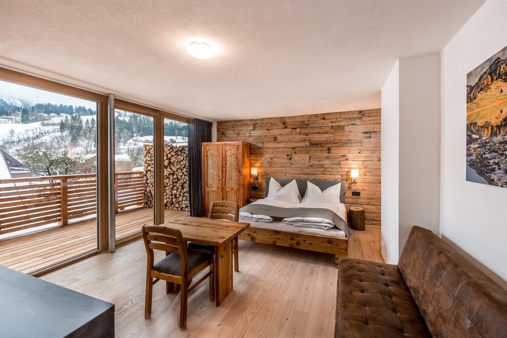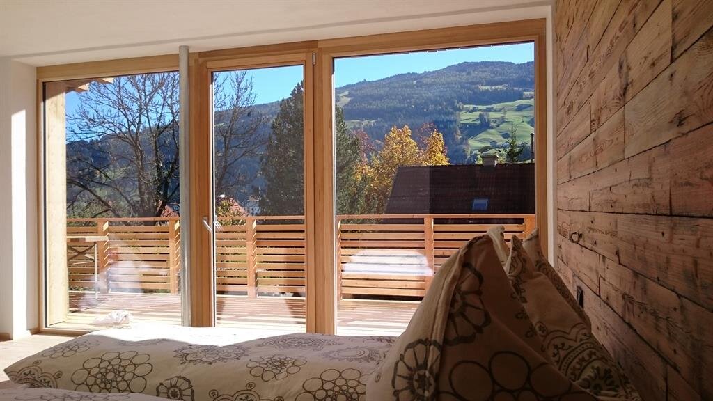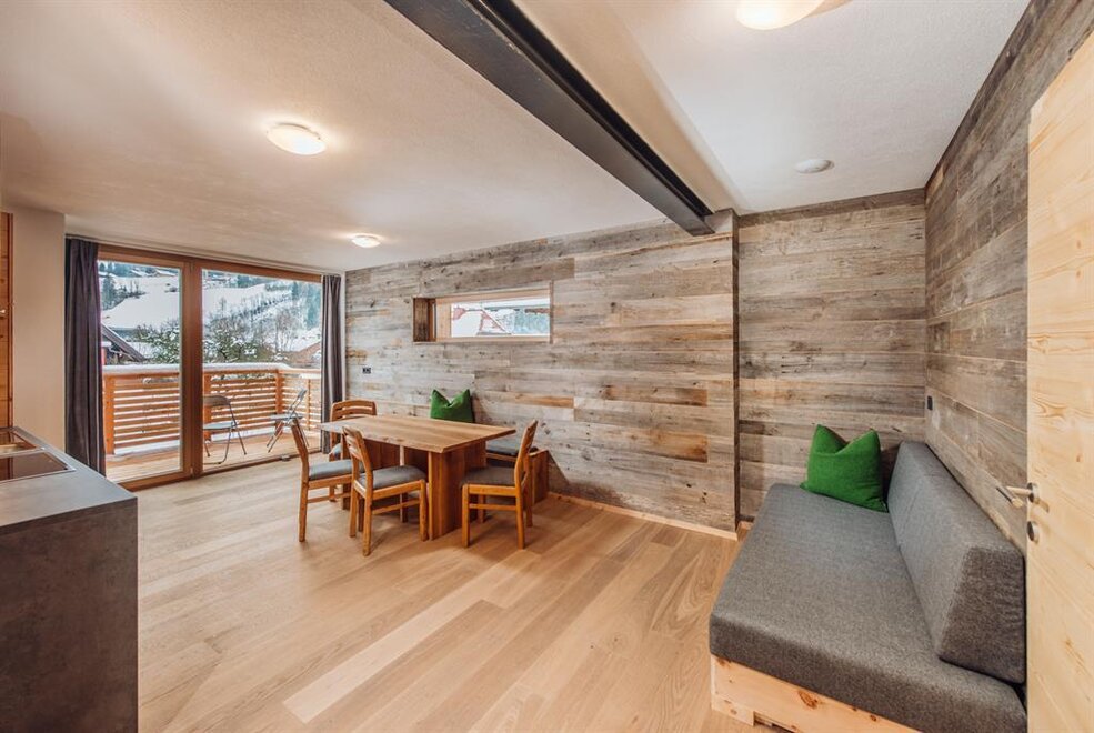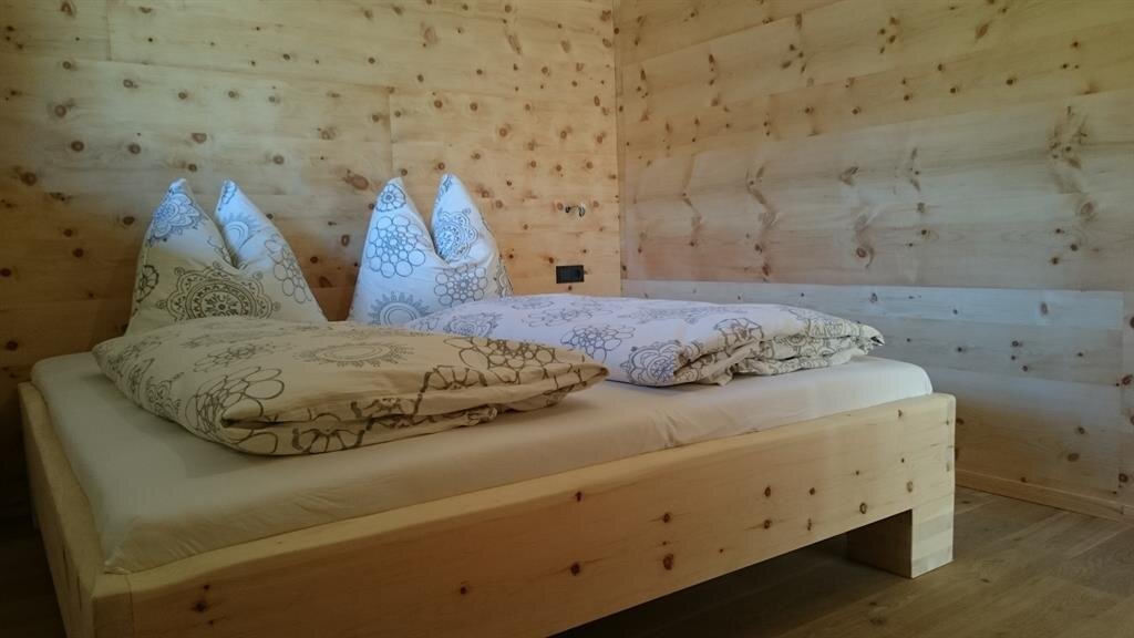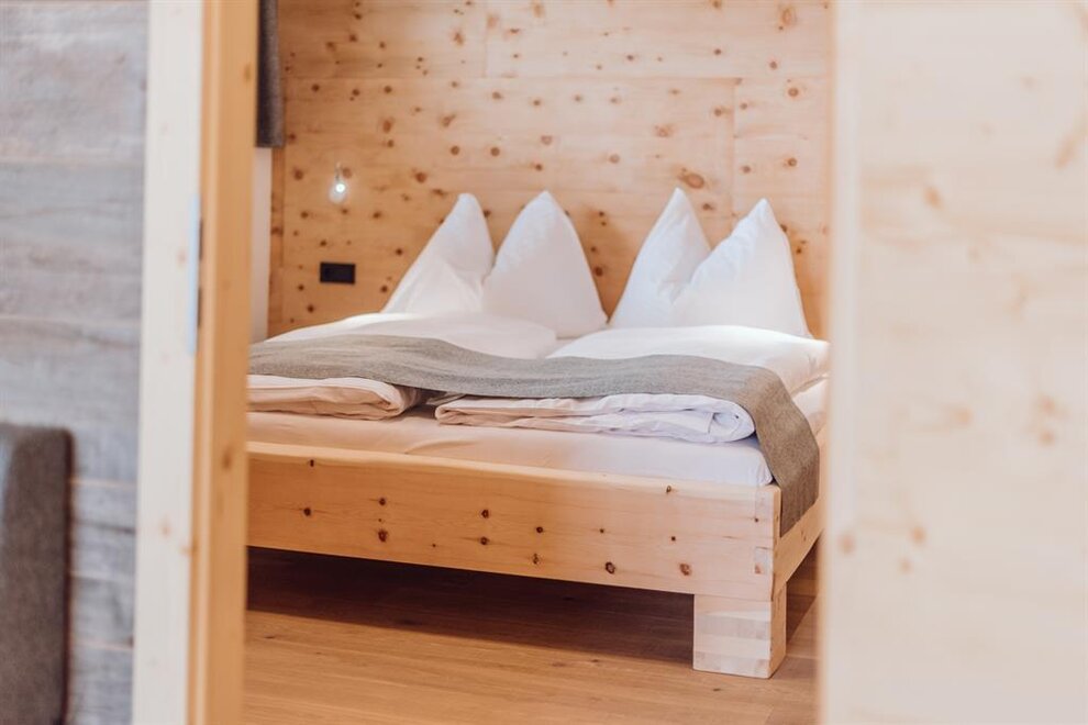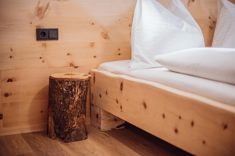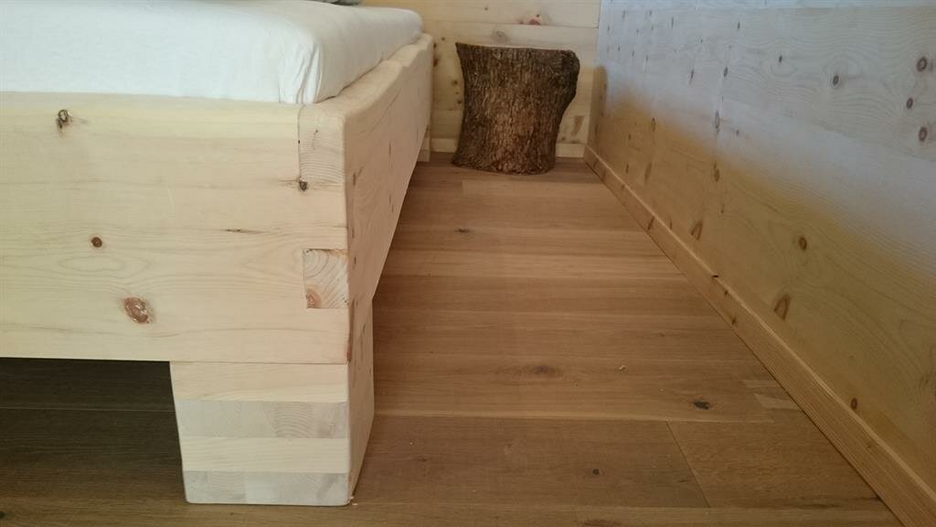 Our apartment "Zirbe" is named after the wood "swiss pine" and that's what the walls and beds of our sleeping rooms are made of. This wood is said to have a very good effect on your sleep.