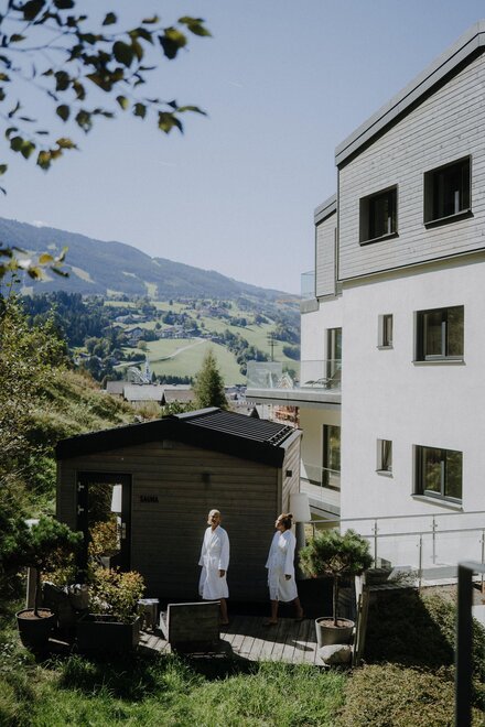 - 1 private spa with sauna&views of the Dachstein, granite basin&rain shower&single bed