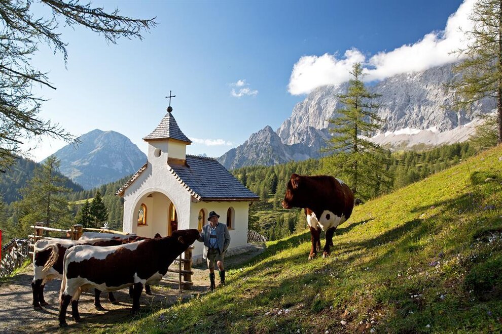 Experience the beauty of nature against the picturesque backdrop of the Dachstein South Face in the Schladming-Dachstein holiday region.