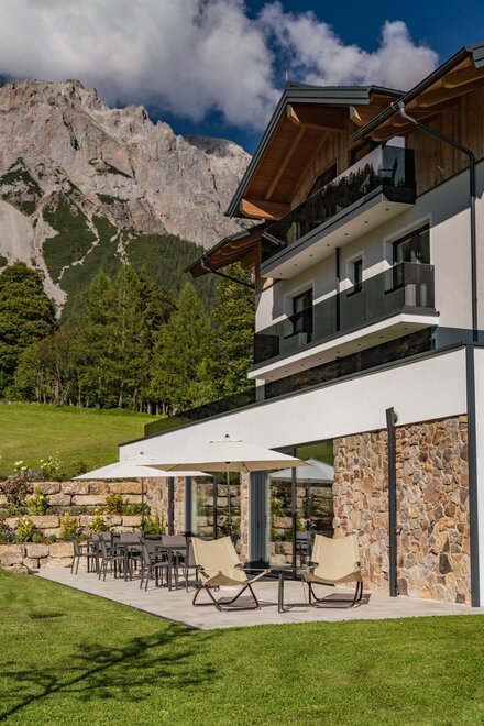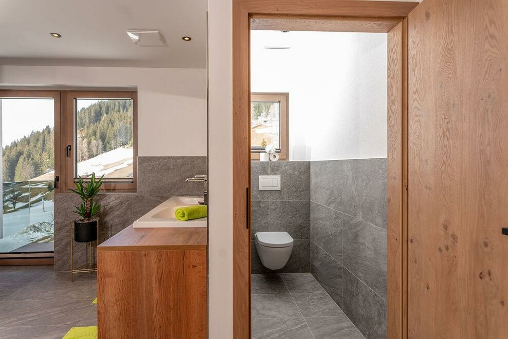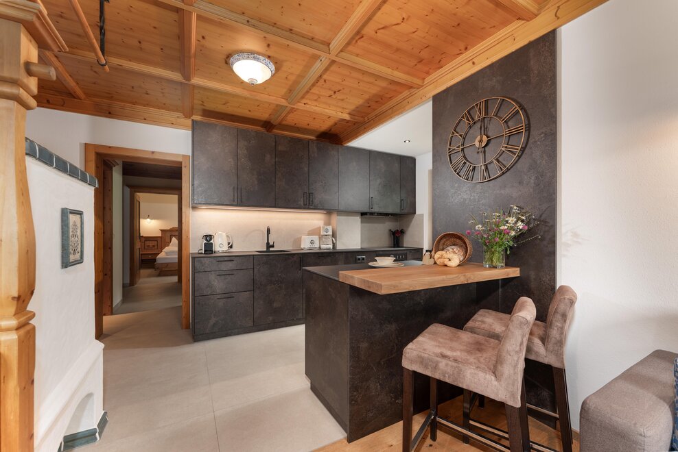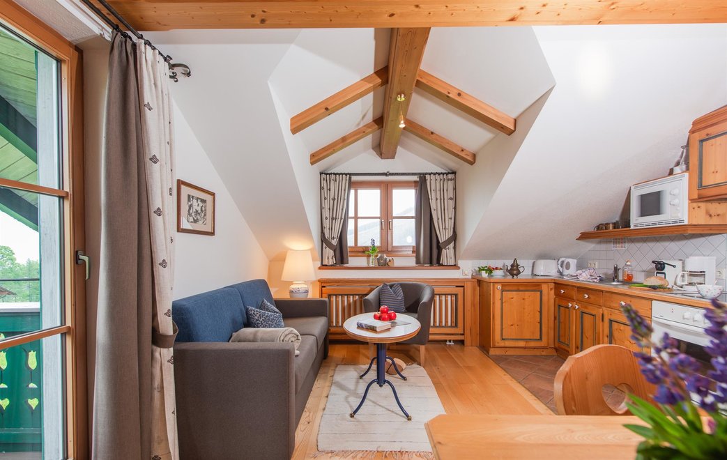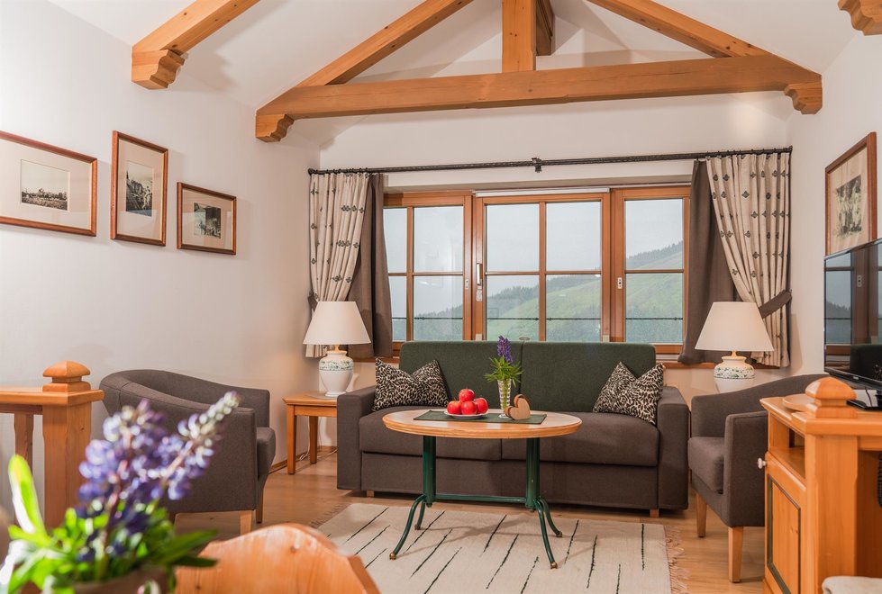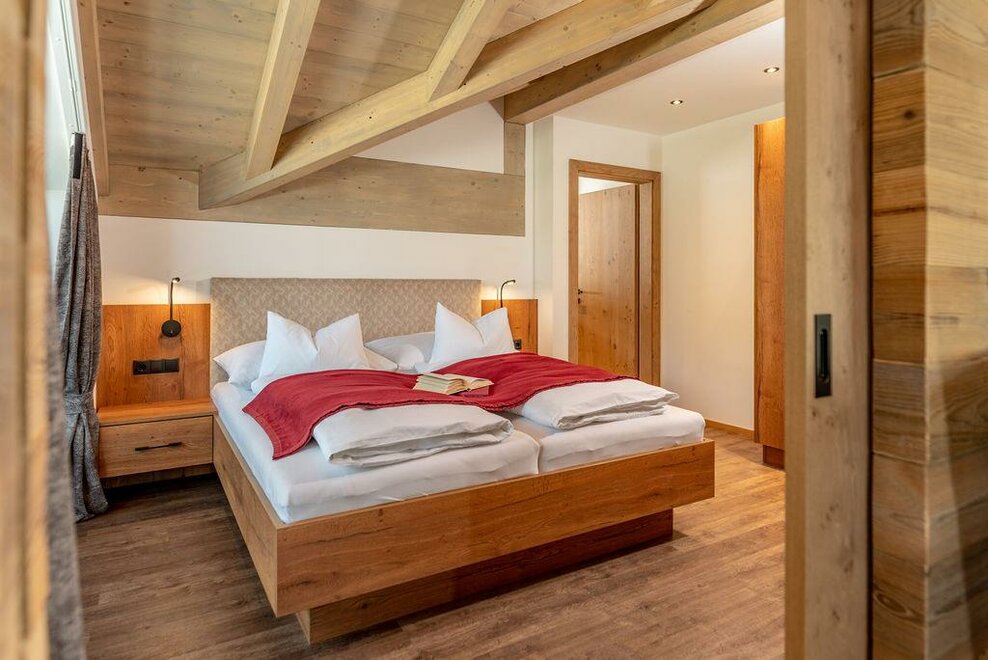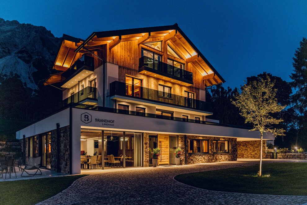 Apartment Lieblingsplatzl: Tradition meets luxury. Ideal for families or 2 couples.The built-up attic and penthouse in the Brandhof Landhaus stands out with its brightly lit visible roof chair, large window fronts with unique panoramic views and light-flooded open rooms. An exclusive room offer of 2 bedrooms, 2 bathrooms with 2 toilets, a high quality equipped kitchen in the middle of the apartment with open dining area and cozy living room promise an unforgettable break in the mountains. The Finnish sauna overlooking the Dachstein Mountains and the Schladminger Tauern is an exclusive custom made made from local wood. The exclusivity is rounded off by the elevator in the middle of the apartment.