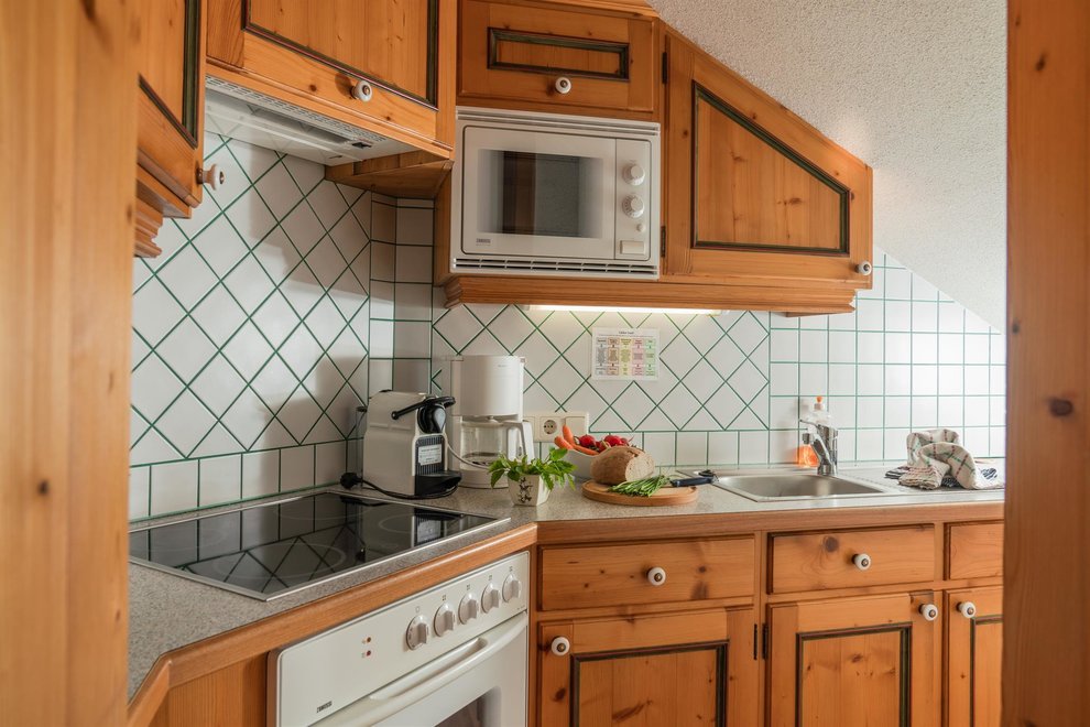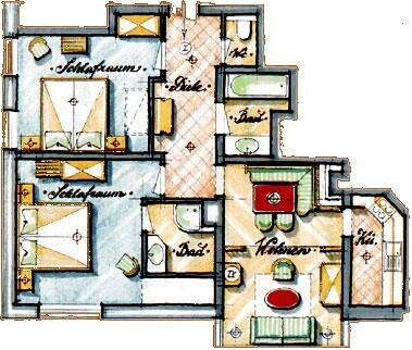 The apartment is equipped with 2 bedrooms (1x bunk bed), 1 living room with couch and tiled stove, Sat-TV, radio, telefon, microwave, e-cooker, refrigerator, 2 bath/shower, toilet, balcony.