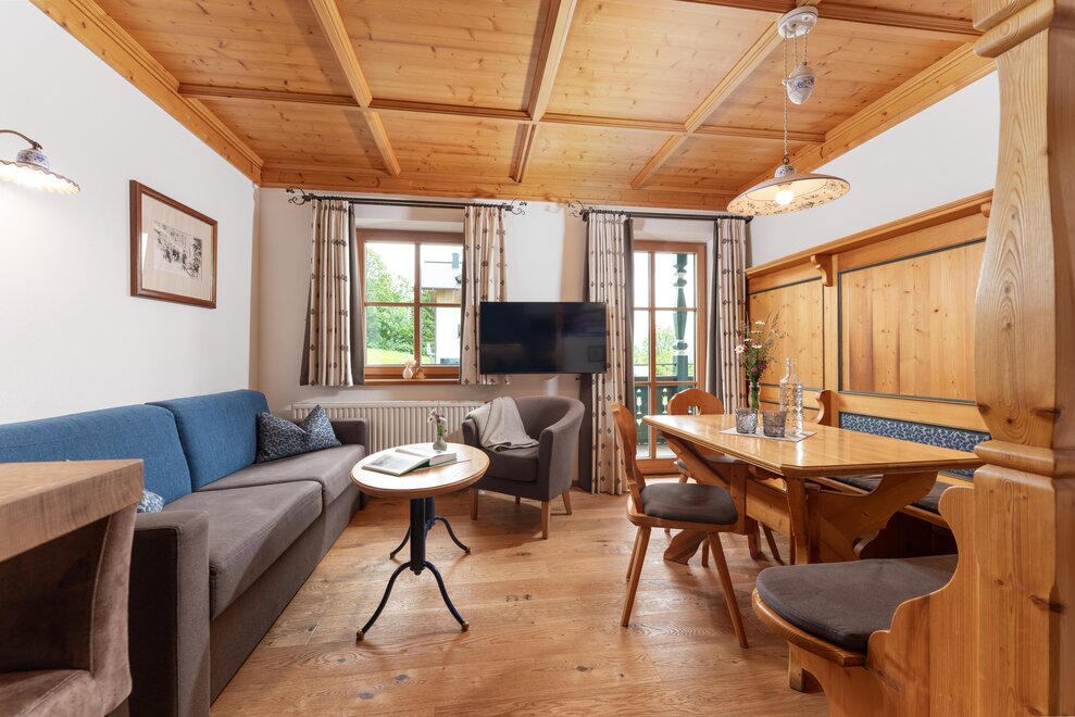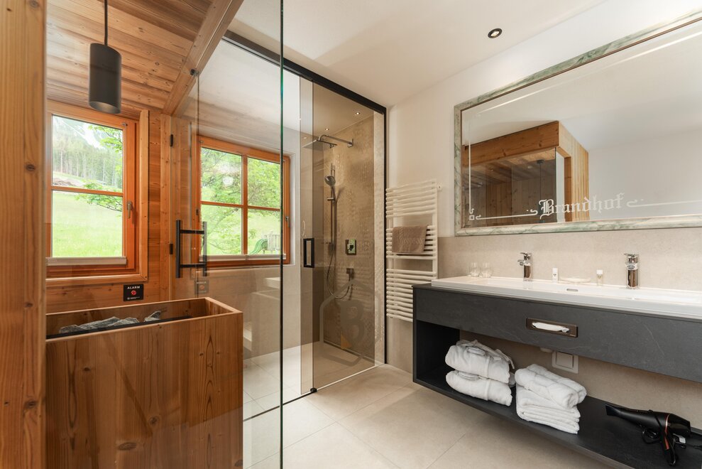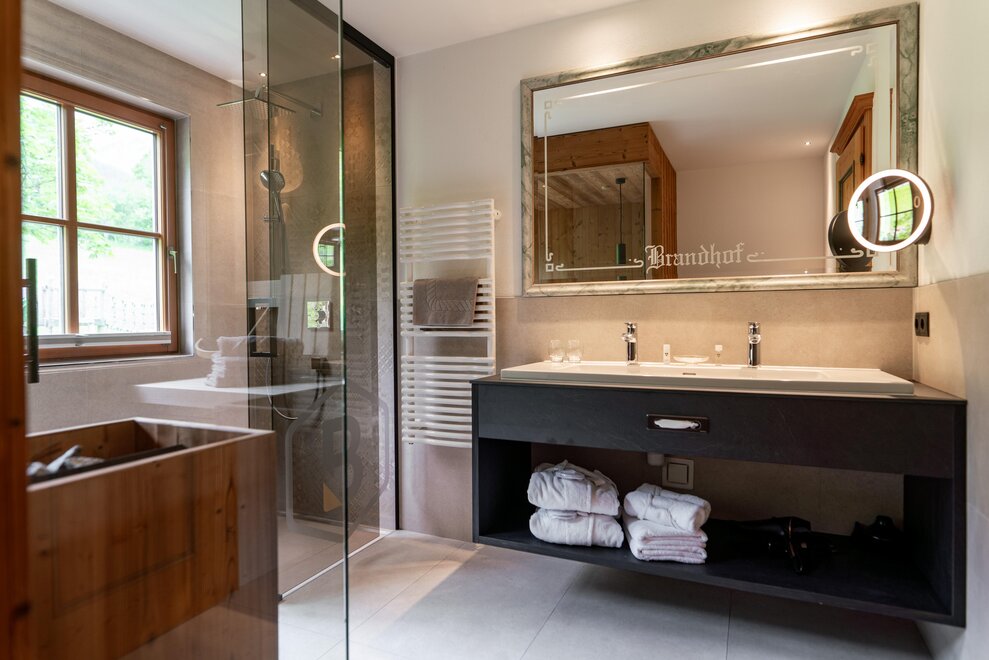 This is how the story of the “Brandhof” began. Now run by the fourth generation, the Brandhof and the Brandalm have become a real jewel for those seeking peace and quiet and nature lovers. You can feel the family bond between nature, forest and agriculture in our heart of the Brandhof parent house, the Brandhof Landhaus, which was newly renovated in 2020, as well as on the Brandalm. Lots of wood, loden & matching woolen materials in natural colors complement the feeling of wellbeing ‘in our apartments with a view of our wonderful mountain panorama.