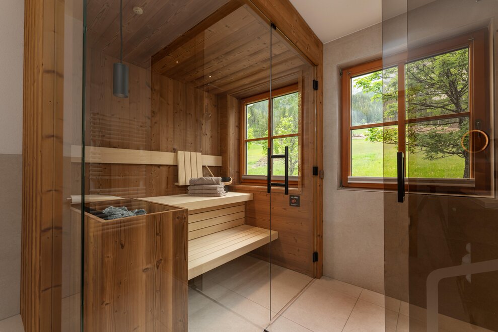 The apartment has a salt sauna with a fantastic view of the mountains. Balcony facing south and west and 30 m² terrace facing east.Furthermore, the apartment is barrier-free and has an elevator as well as an electric filling station, garage for bicycles, and ski and shoe room.