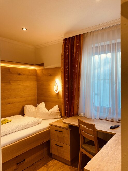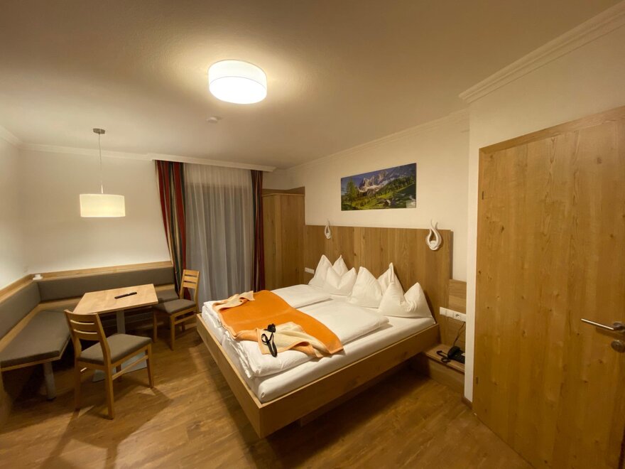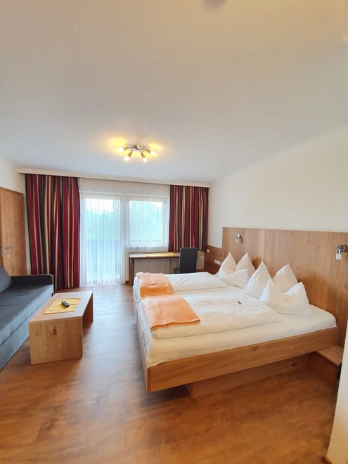 In a wonderful location with a great view, our family-run house offers its guests 20 rooms for up to 47 people (single rooms, double, three- and four-bed rooms, family rooms) that can be individually combined.