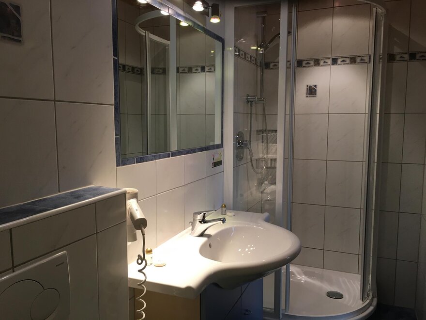 Cosy double room with shower, WC, hairdryer, safe, telephone, flat TV, W-Lan and balcony.