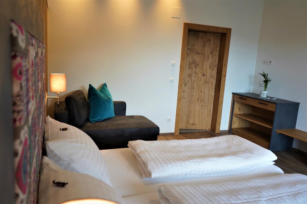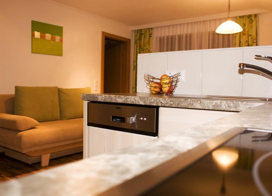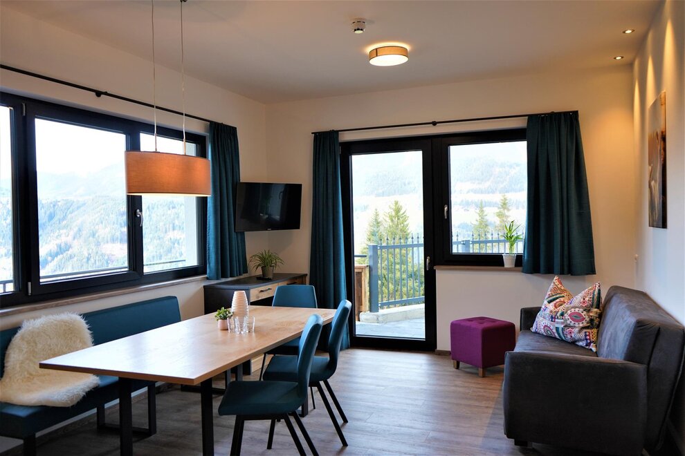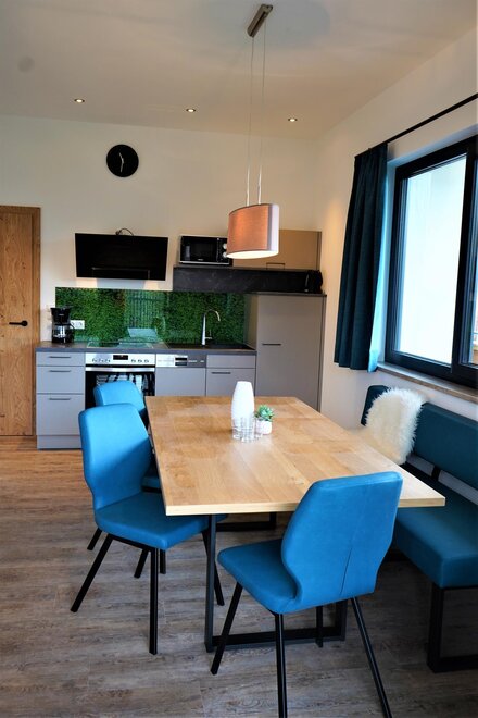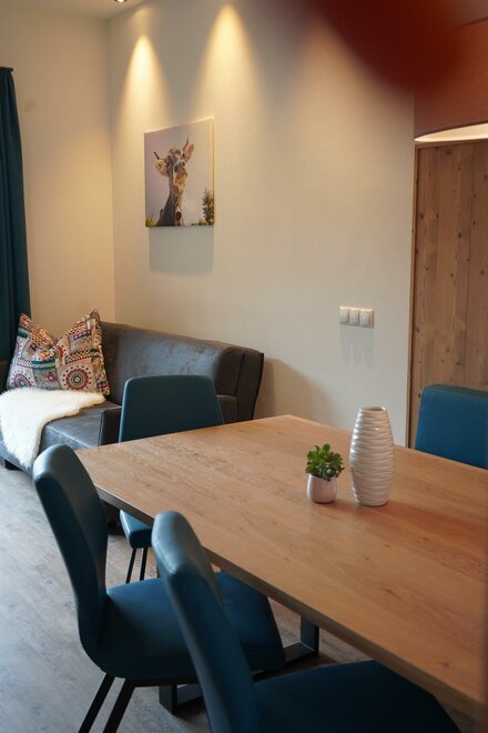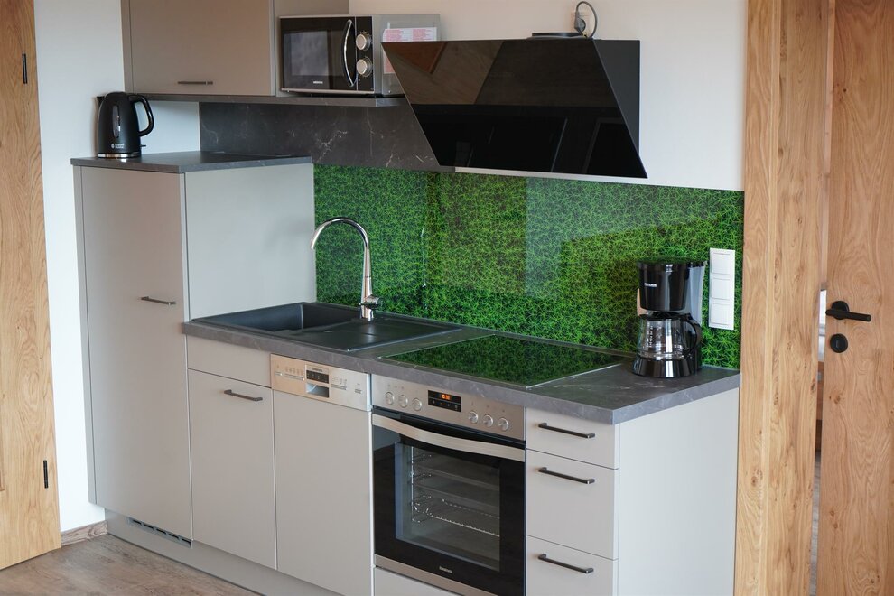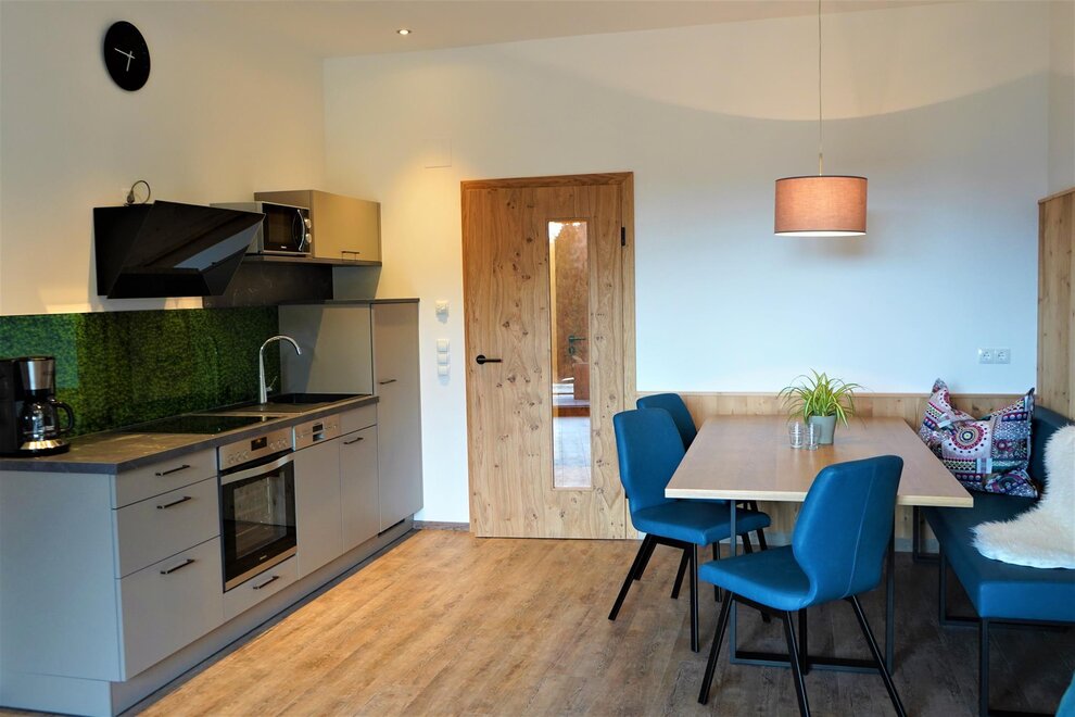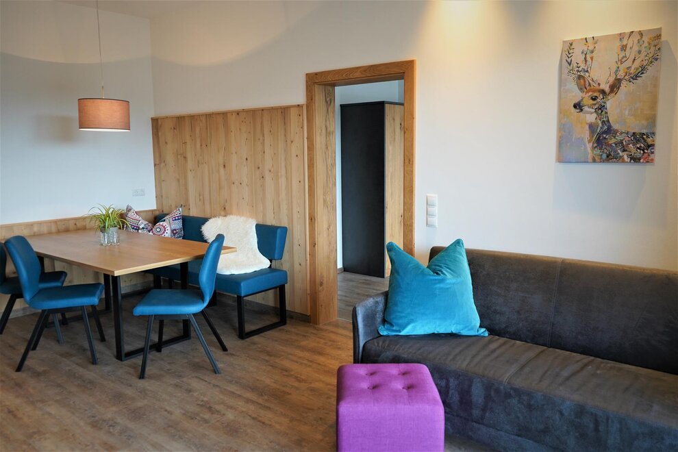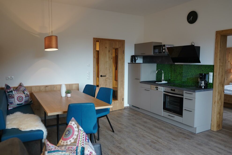 1 bedroom with double bed, sleeping couch in the living area (for 2 persons), fully equipped kitchen (microwave, dishwasher) with dining area, balcony or terrace with seating,deluxe bathroom with infrarot cabin, shower and toilet, Flat TV, free WIFI