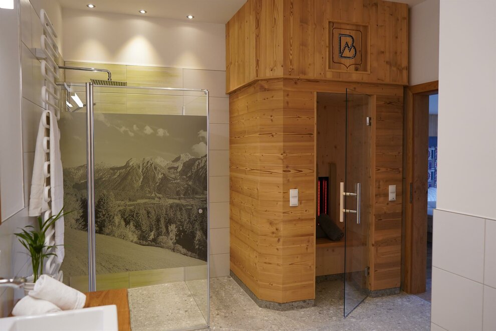 balcony or terrace with seating, 2 bathroom with shower and toilet,infrarot cabin in one bathroom, shower and toilet, Flat TV