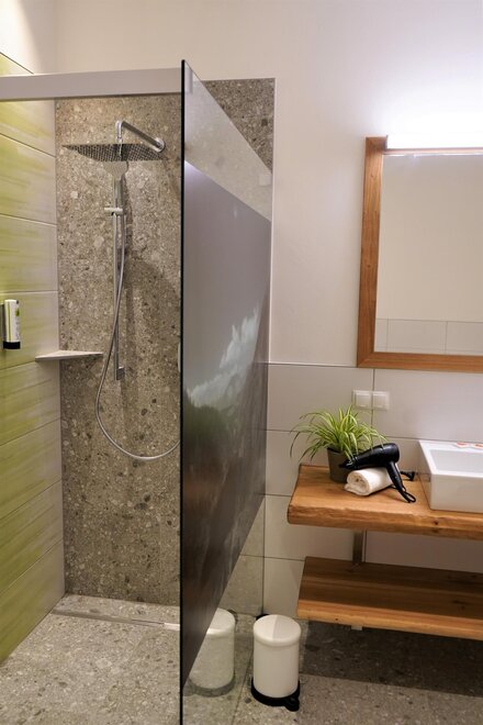 kitchen and table linen, anteroom, wheelchair accessible room/apt., use of washmachine, meadow, WiFi, barrier free according to DIN, combination microwave, sauna, microwave, satellite TV, vent hood, kettle, radio alarm, open plan kitchen/living room, heater, studio, Größe m²: 45, bed linen (non-allergenic), non-smoking room/apt., bed linen available, refrigerator, separate bedroom/living room, coffeemaker, bedding, modern furnishing, balcony furniture, freezer compartment, central heating, closet, oven, balcony (in some rooms), dishes available, electric stove, garden furniture, combined bedroom/living room, family room/apt., kitchen, room/apt. with disabled access, pets permitted on request, TV, good as new room/apt., towels available, separate living room, furniture suite, garden, balcony, no carpet, terrace, dishwasher, living room, weekly cleaning, dish sink, low-noise room/apart., refrigerators available, cooking possibilities, quiet room/apartment, internet connection available, terrace (some rooms)