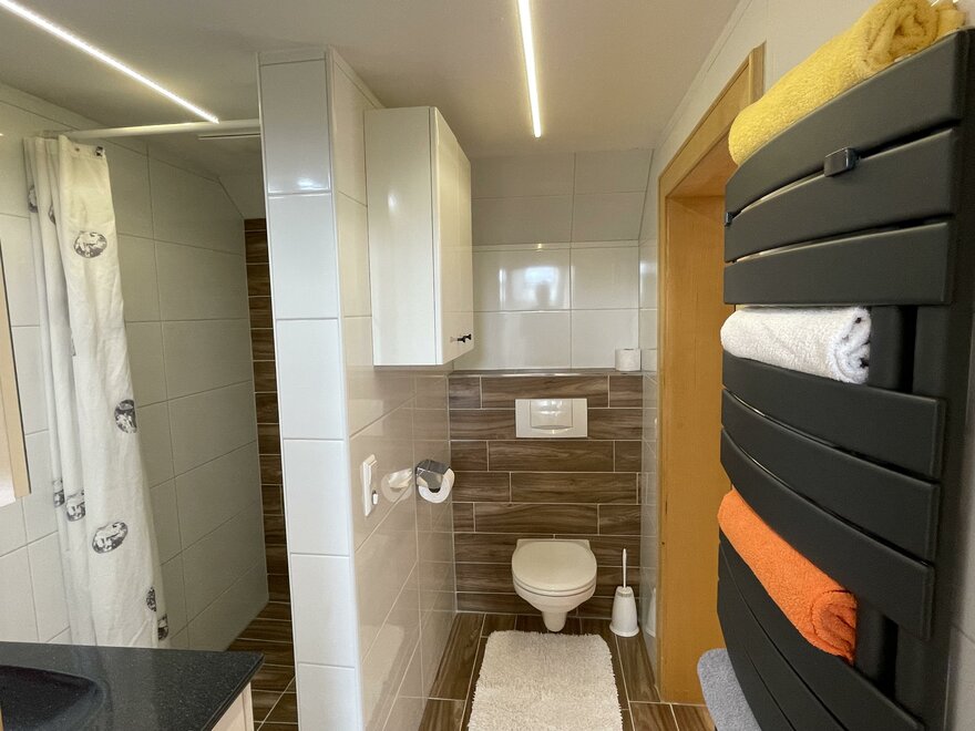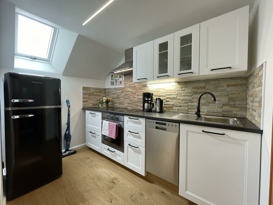 Apartment 1 with about 45 m² has a cozy kitchen-living room with a very good sofa bed for 2 people, a bedroom, as well as shower and toilet. Bed linen and towels are available.
