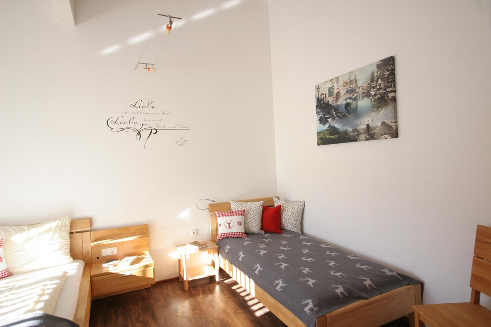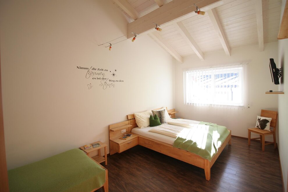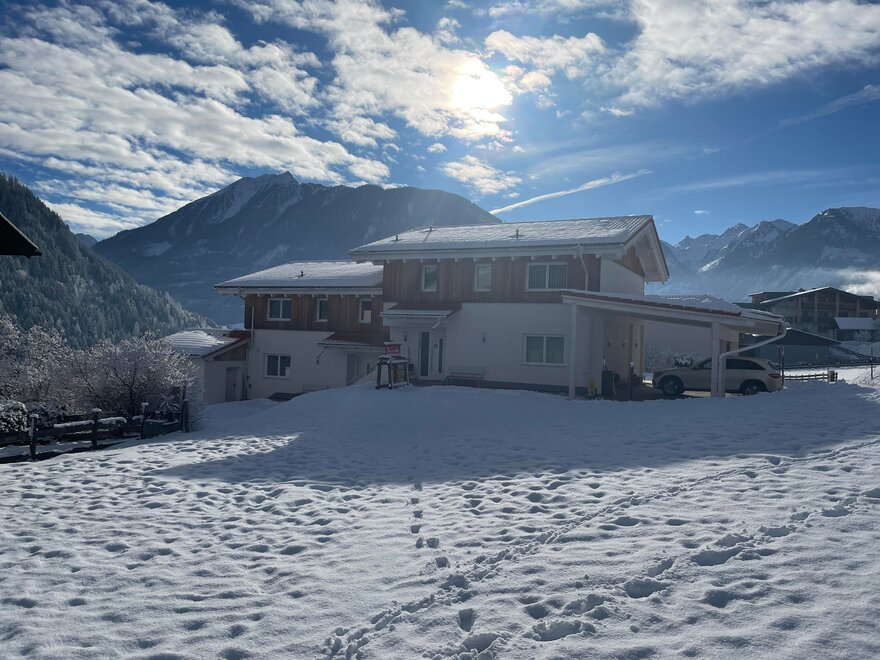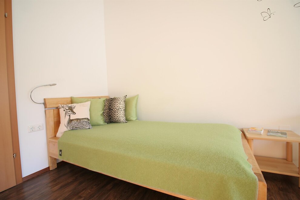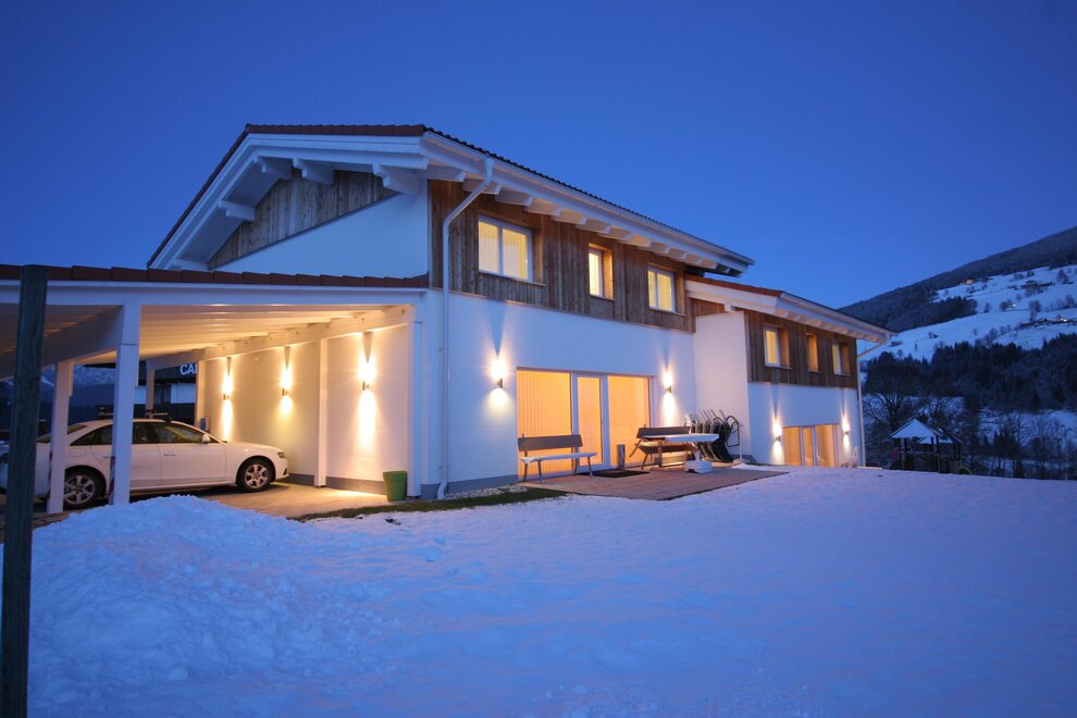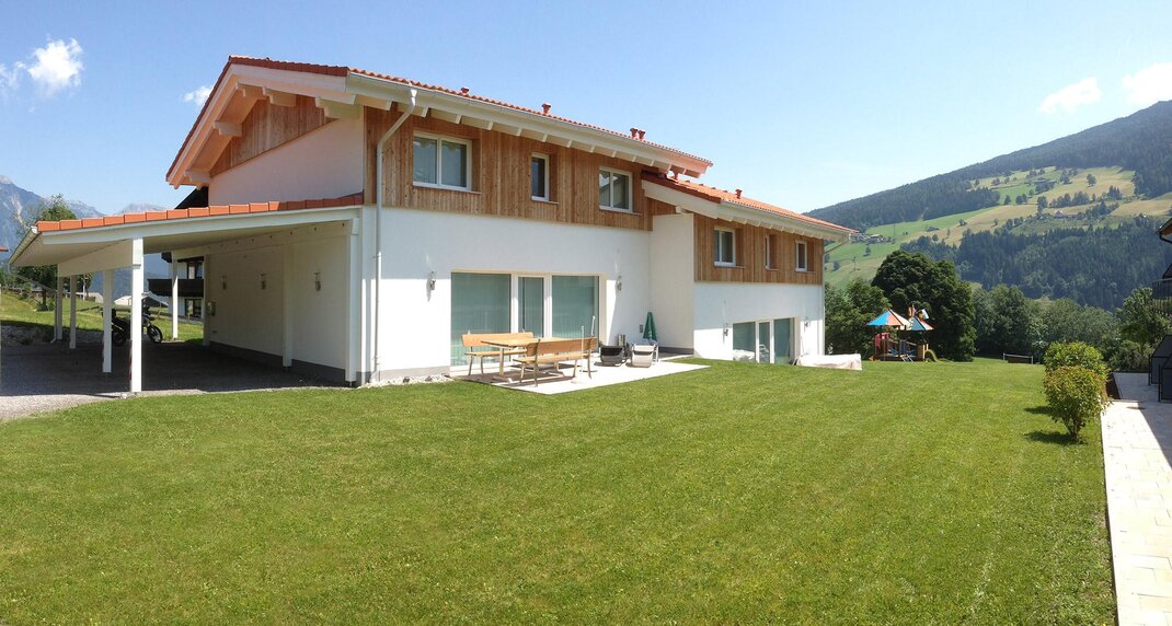 A house for you alone! The ground floor with 65 square meters, divided into kitchen - dining - living - one bedroom with private shower and toilet for 2 persons - an extra bathroom - lobby with wardrobe - and ski / hiking boot dryer. South exit to the direct sun terrace to relax or for breakfast in the morning sun! Lawn for sunbathing and children - playground. The upper floor of 65 m² divided into 2 large bedrooms for 3 persons with private shower / WC / TV / Wi-Fi and sauna.