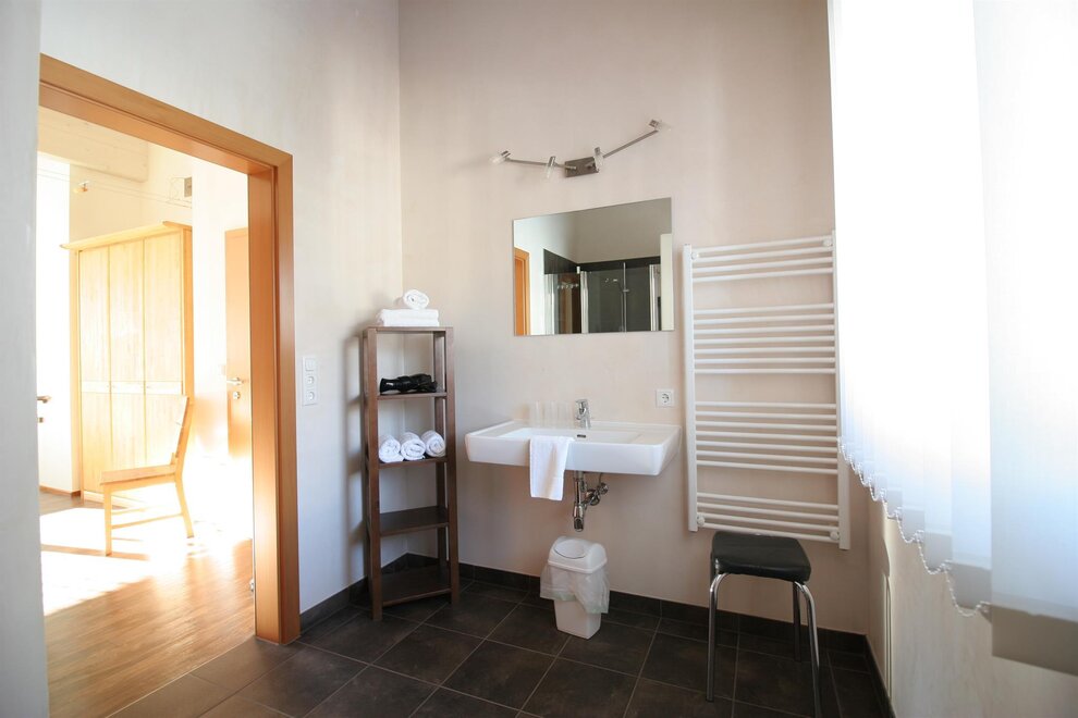 The ground floor with 65 square meters, divided into kitchen - dining - living - one bedroom with private shower and toilet for 2 persons - an extra bathroom - lobby with wardrobe - and ski / hiking boot dryer. South exit to the direct sun terrace to relax or for breakfast in the morning sun!