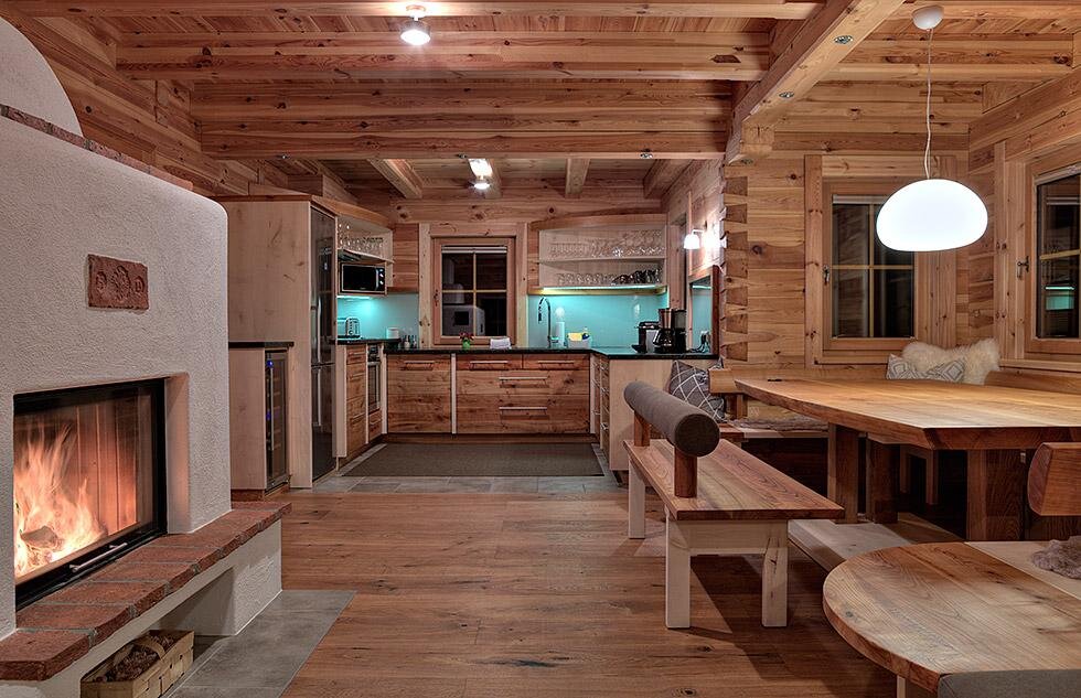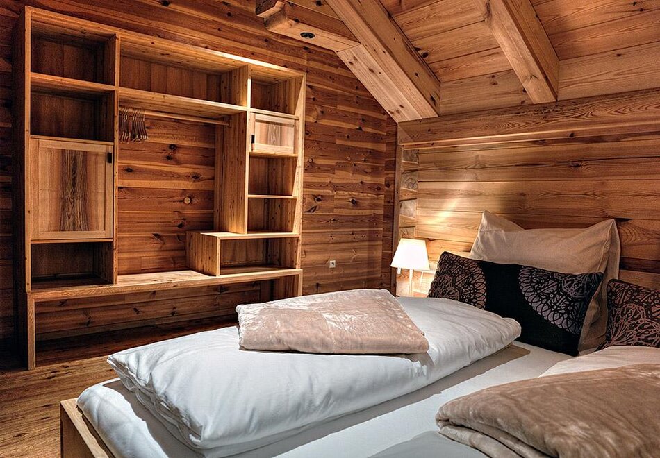 The chalet with approx. 180m2 is build over 3 floors. On the ground floor there is large open area which is divided into a kitchen, dining and living area. The kitchen is fully equipped with all you need: refrigerator, freezer, oven, nesspresso coffee machine, dishwasher as well as a “Wunderbar Cooler” as well as enough silverware for more than 10 people. A wine refrigerator with a selection of Austrian wines (at cost price) is also available. The large lovely eating place in a bay offers space for up to 10 people and the cosy seat group with Plasma TV offers an excellent opportunity to relax and unwind. The focus in the living area is the open fireplace. From here one has access to the large south terrace, which is furnished with high-quality outdoor furniture and deckchairs as well as a Weber gas grill. Also in this floor there is a double bedroom, a bathroom with shower as well as a separate WC.