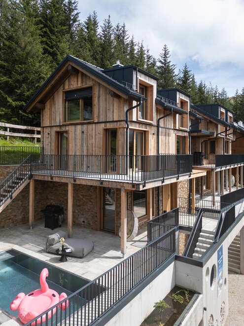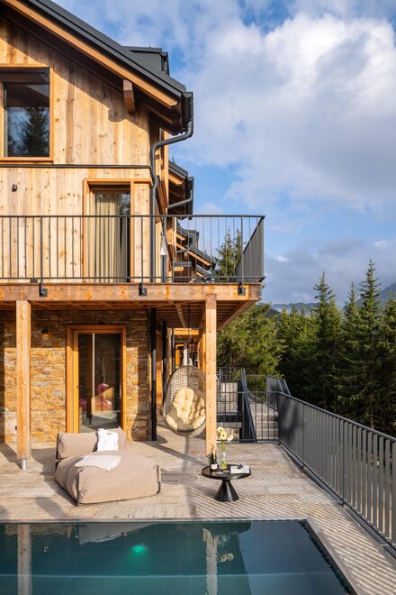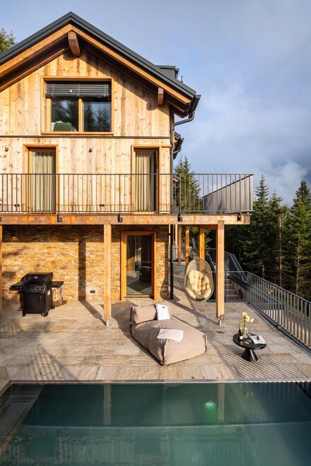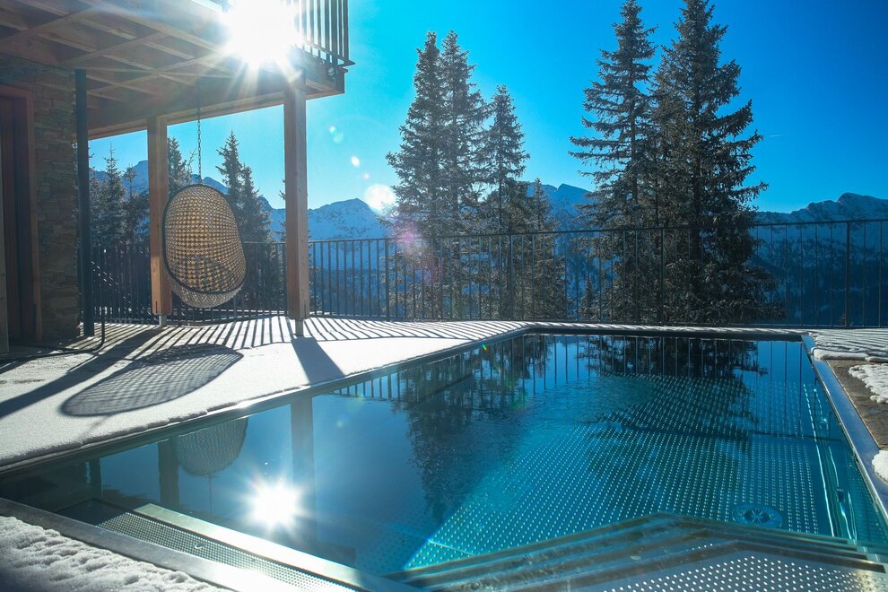 Chalet Picea on Hauser Kaibling offers you an exclusive alpine experience in the heart of picturesque Styria. Enjoy luxurious comfort in the middle of nature, surrounded by breathtaking mountain panoramas. The highlight of your stay: The heated stainless steel pool with counter-current system and massage bench, which offers you a relaxing bathing experience all year round. Chalet Picea, where relaxation and exclusivity come together at the highest level.