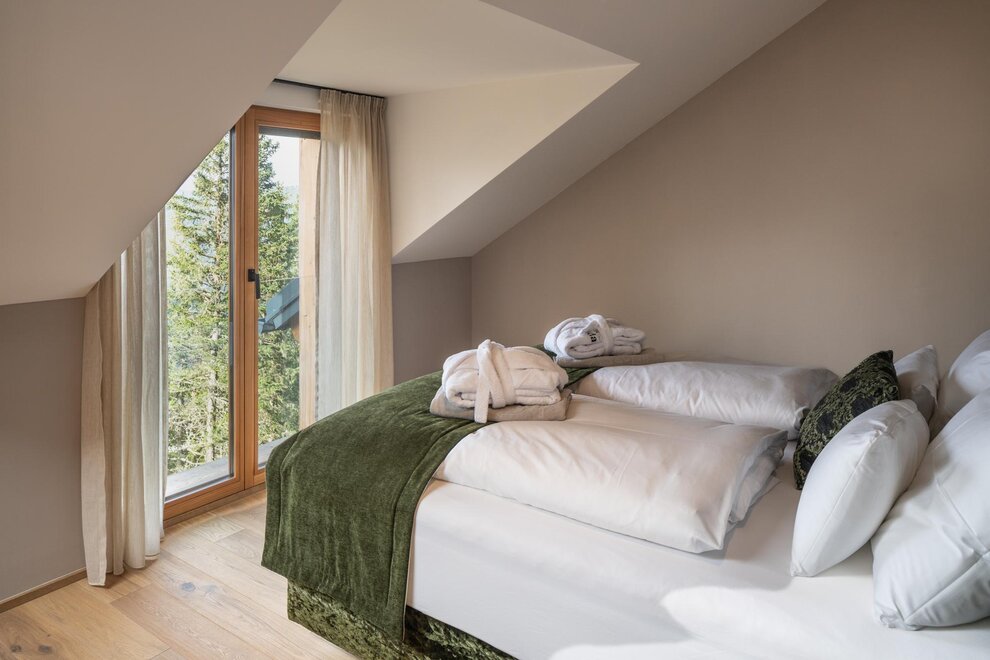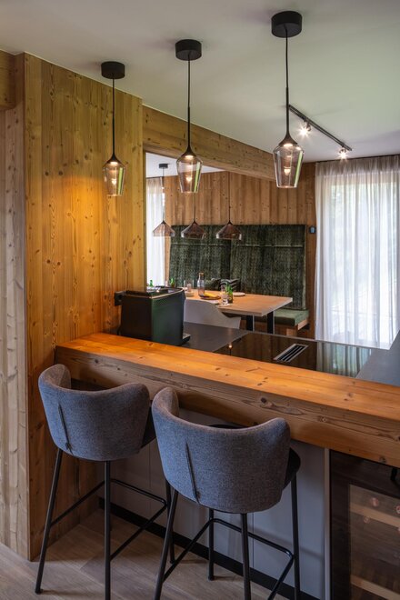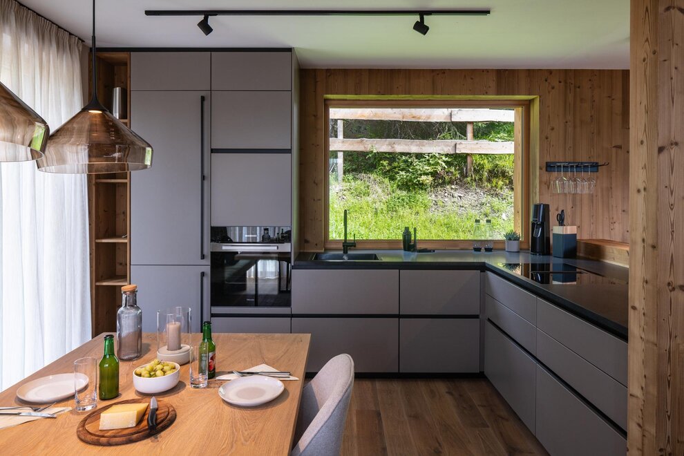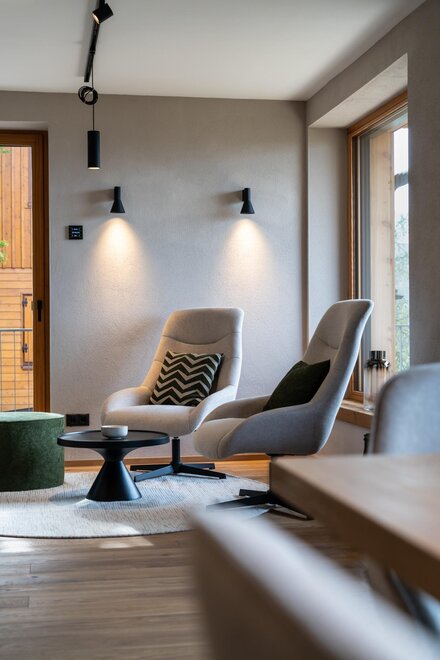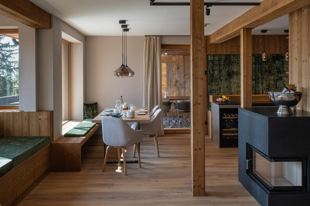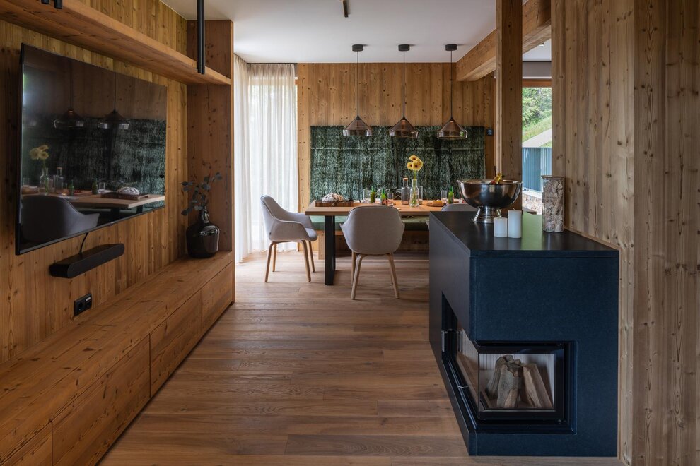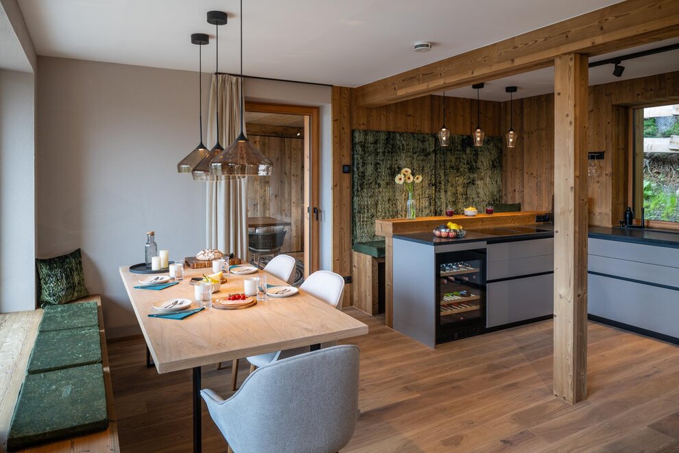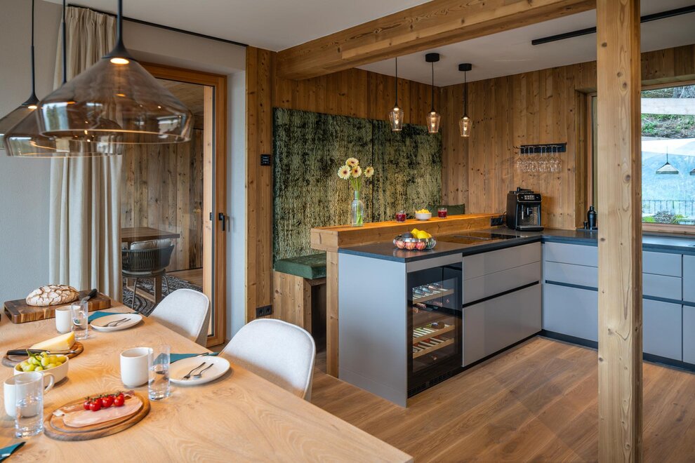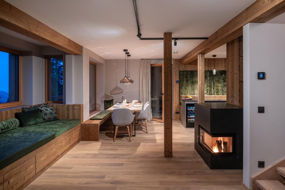 The Hauser Kaibling chalets are true gems of architecture and design. Consisting of two exclusive houses; Chalet Picea and Chalet Abies, the refuge offers a luxurious retreat. From the outside, it enchants with its alpine elegance, while the interior is a successful combination of modern comfort and natural coziness. The spacious rooms offer spectacular views of the majestic peaks of the Austrian Alps and are equipped with every amenity. The stylish living area, the open fireplace and the fully equipped premium kitchen invite you to linger on snowy days.