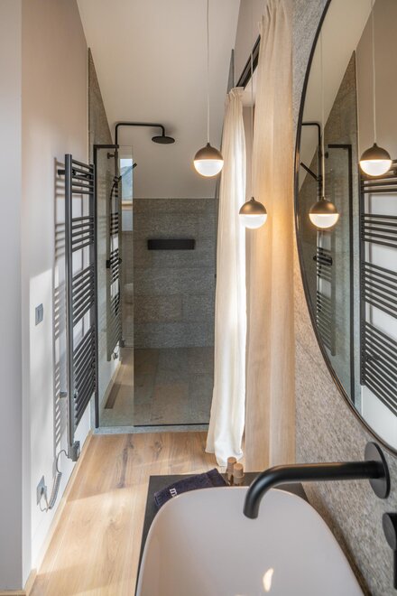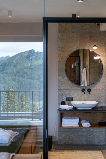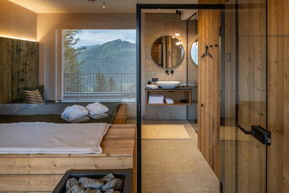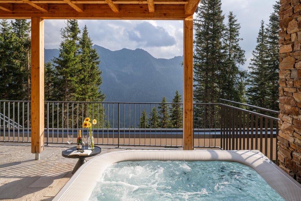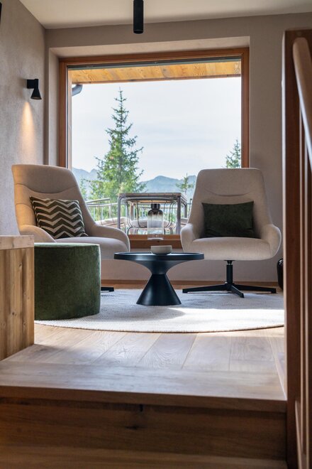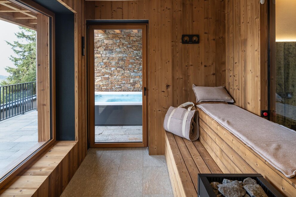 Experience pure relaxation in Chalet Abies on Hauser Kaibling. The luxurious retreat not only offers you a stylish retreat in the middle of the Styrian Alps, but also a unique highlight: a whirlpool with breathtaking views of the majestic Alps. Unwind and enjoy the incomparable view while the warm water of the whirlpool relaxes your muscles. At Chalet Abies, nature and luxury merge to create an unforgettable stay