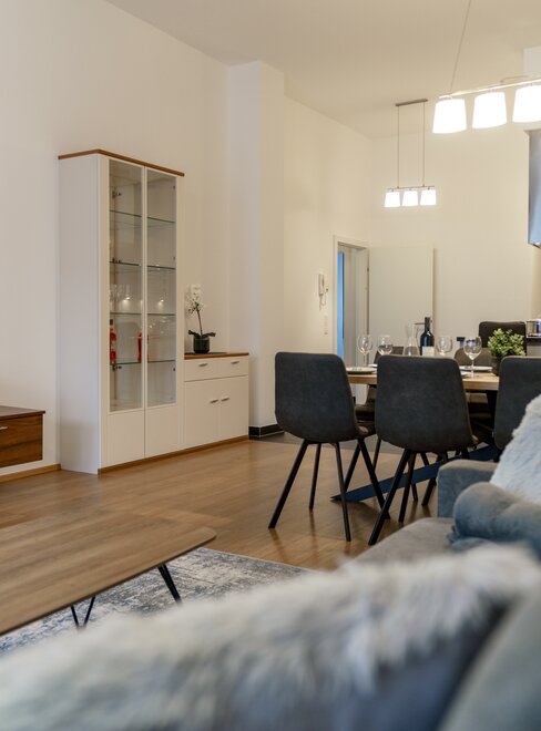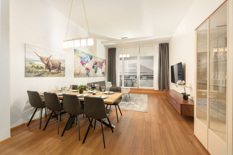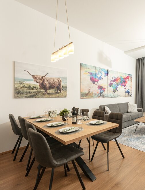 The charming and well-equipped 96 m² apartment is in a prime location on the main square of Schladming.