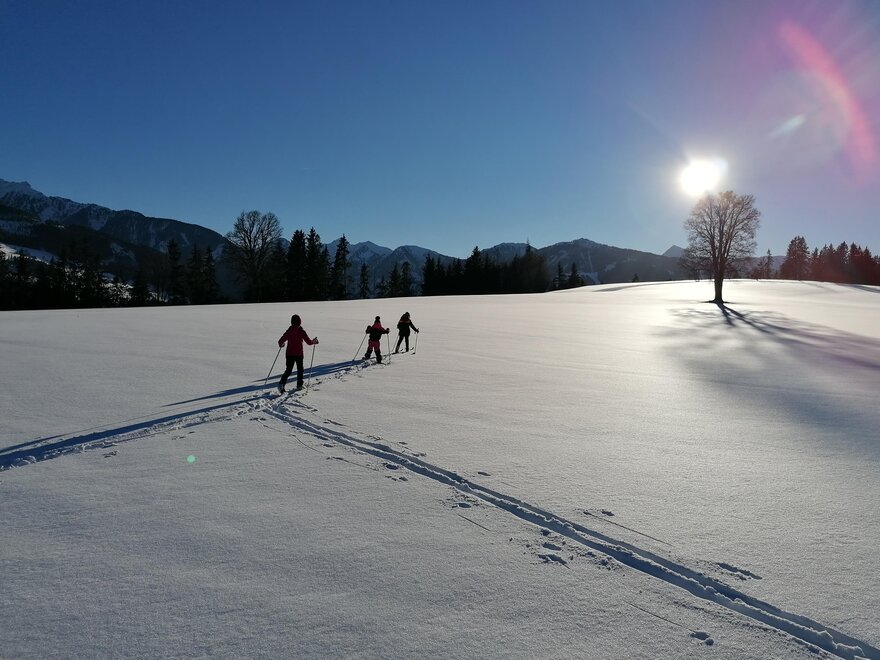 The Walcher family warmly welcomes you to Haus Korda. We, Tanja and Torsten Walcher, are always available to answer any questions you may have. We, along with our sons Janne and Niklas, are nature lovers and sports enthusiasts, and we want to ensure you have an unforgettable and enjoyable holiday at Haus Korda. Surrounded by beautiful and tranquil nature, Haus Korda is located in the heart of Austria, in the beautiful, green region of Styria. Whether cross-country ski trails, ski slopes, ski tours, snowshoe trails, or horse-drawn sleigh rides in winter, or wonderful hikes, bike trails, running trails, or a visit to the Dachstein Glacier in summer – Ramsau am Dachstein has it all.