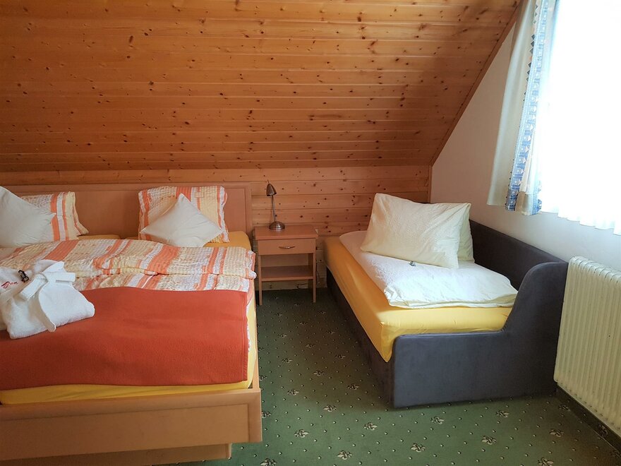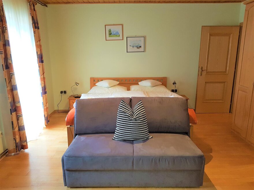 The apartment Fuchsberg is located on the 1st floor of the farmhouse and consists of a spacious living room - of course fully equipped - with a pull out couch, what's more, the bedroom with a double and a bunk bed, a crib could still enough space. Of course also includes a bathroom with them.