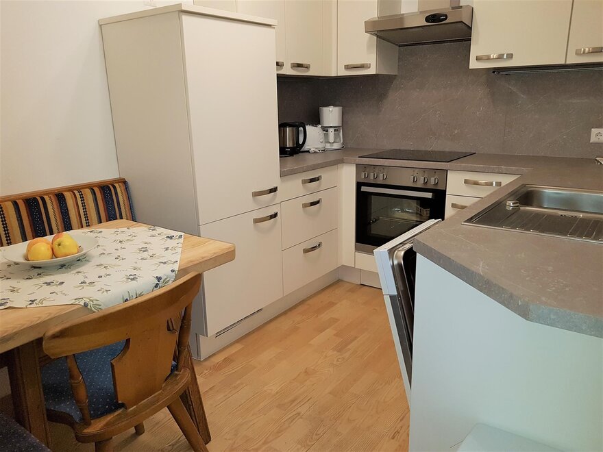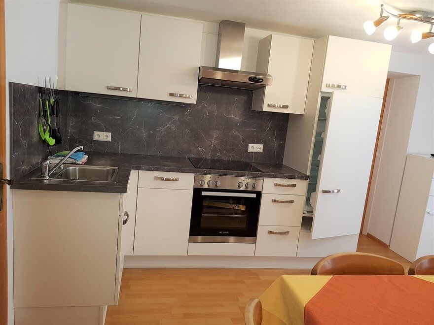 The apartment is located on the 1st floor in the house next door. It has 2 bedrooms, bathroom / WC and a spacious kitchen - of course fully equipped. We want to raise special mention here the stove, which invites for a hilarious day of skiing to relax. From the kitchen opens out a beautiful view of the entire Ennstal and the surrounding mountains.