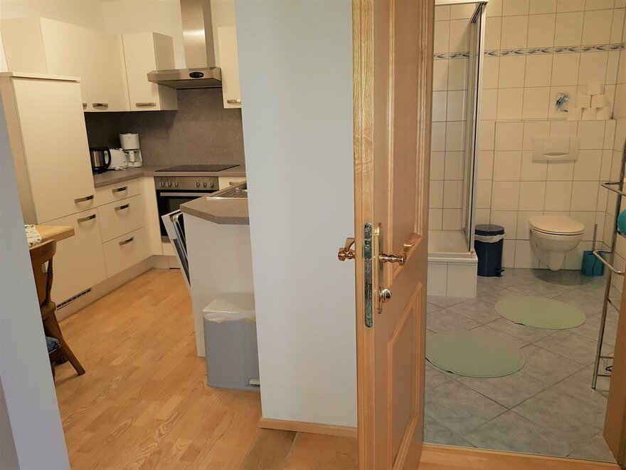 The apartment Hühnereck located on the 1st floor of the farmhouse. It has 2 bedrooms and a cozy kitchen. We want to raise special mention here the bathroom, which offers besides the standard equipment have an infrared cabin and a warming sun marble, from the balcony opens a wonderful view of the village and the surrounding mountains.