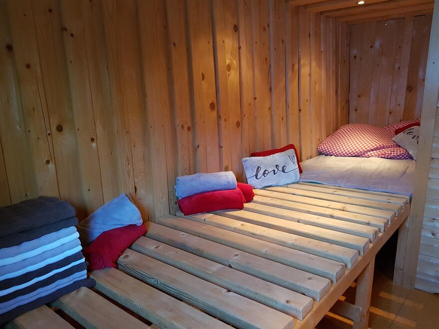 double bed (1 bed/2 mattresses), bunk bed, separate beds, pullout couch max. pers.: 2