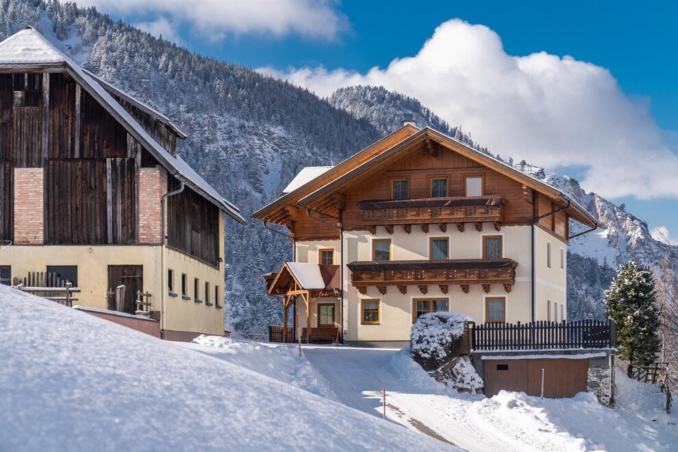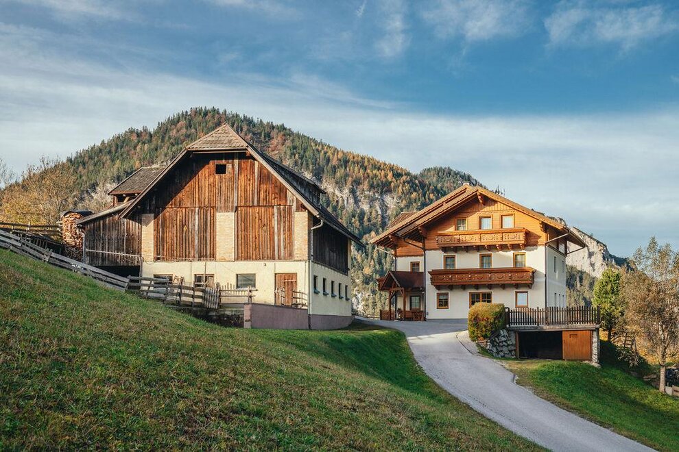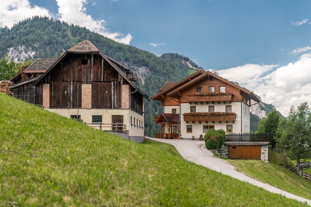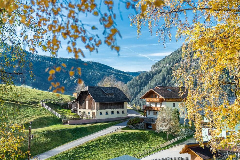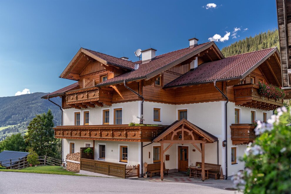 Children-friendly farm on a sunny, quiet hill with views of the Reiteralm. Spacious, lovingly furnished rooms with shwr./WC and balcony. Lavish breakfast buffet, swimming lake and lifts for the 4-Mountains Ski Area – 5-min. drive from the house.