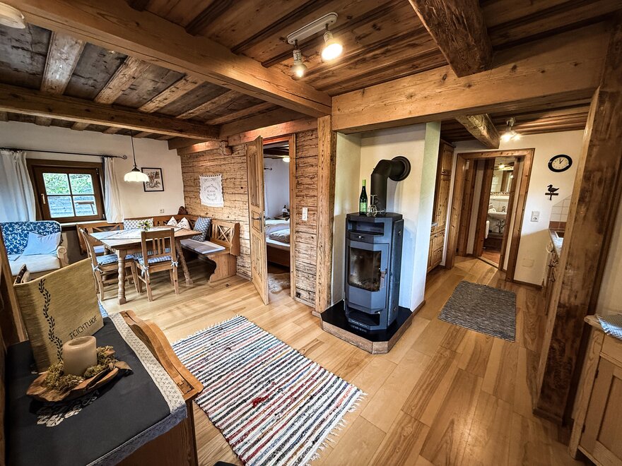 For those who like it more rustic, the Feichtlhäusl" offers a down-to-earth holiday domicile. 2 bedrooms, a living room with dining area and kitchen around a cosy old tiled stove and the balcony offer the ideal apartment for 4 persons. Shower, WC, TV and telephone are of course also available.