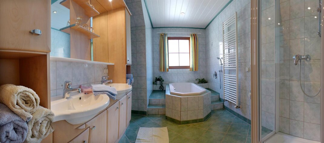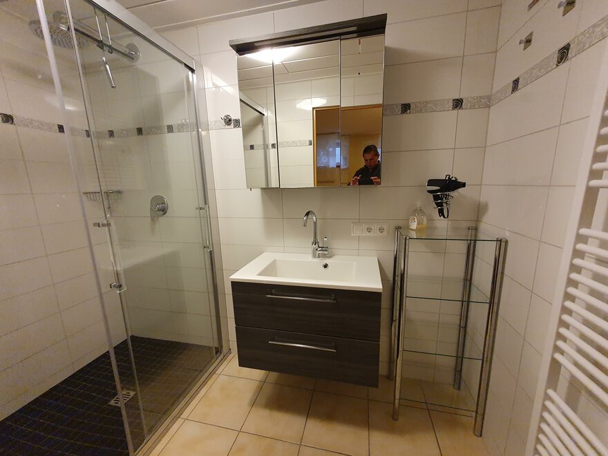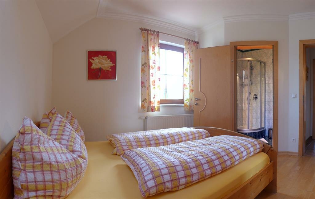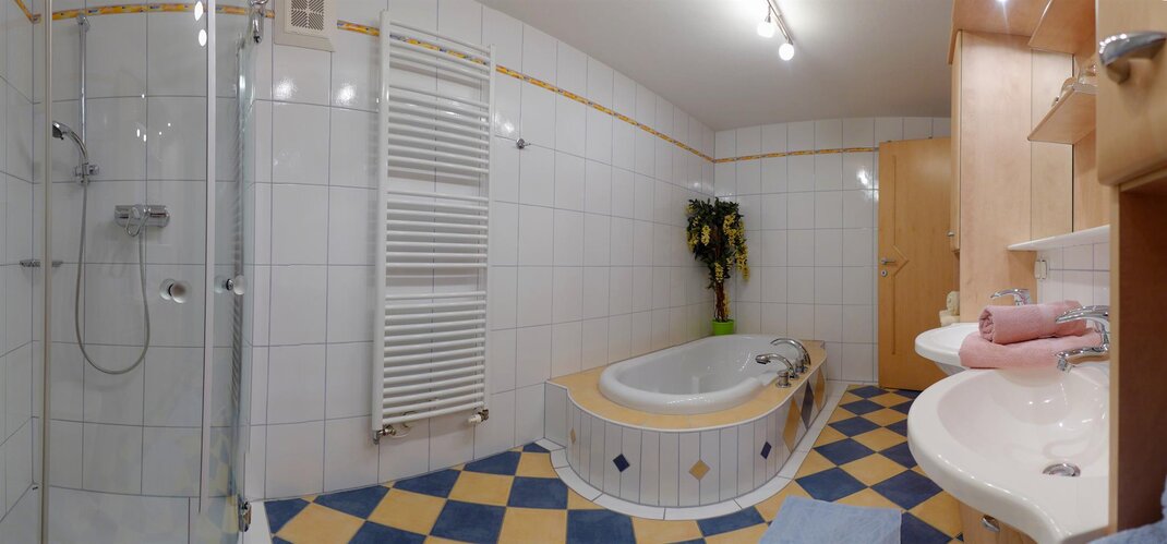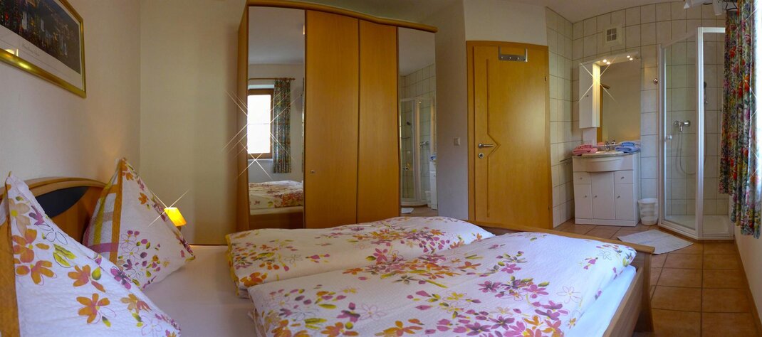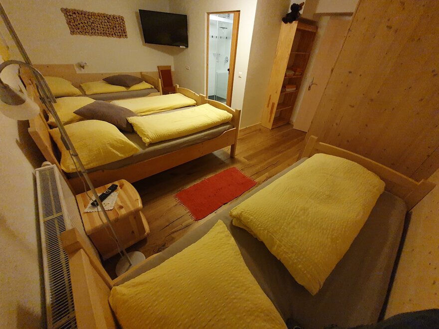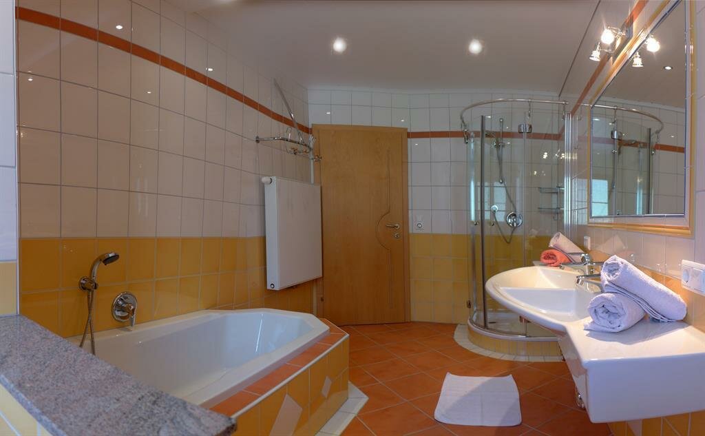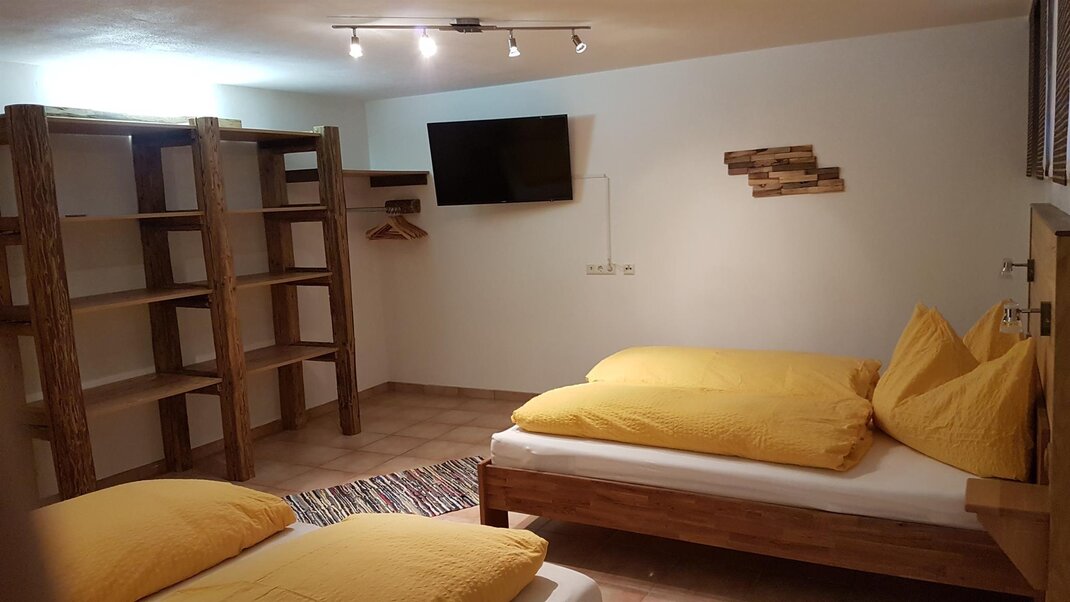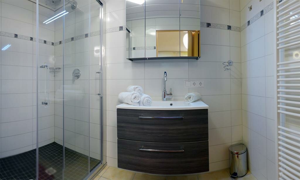 Apartment Gerald is for 2-8 people. The apartment has one big kitchen, livingroom with couch ( there can sleep two people on it ) , one sleepingroom for 4 people, one sleepingroom for 2 people with shower and bathroom sink, a big bathroom with shower, bathtub, double sink and toilette, a secound toilet. A big terrasse with trampoline , table tennis, childrens playground and barbecue area. Each room is with tv and internet.