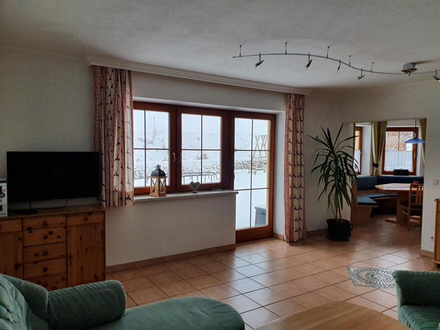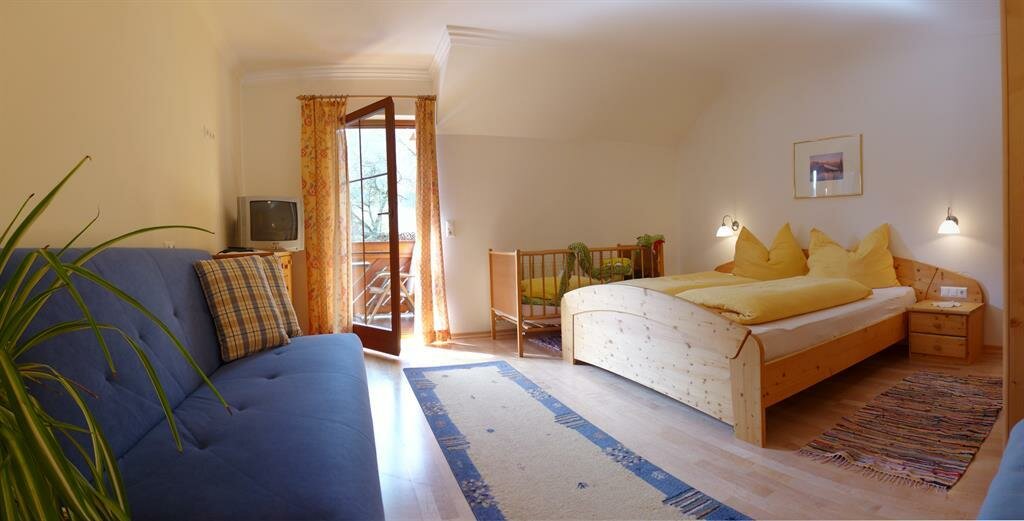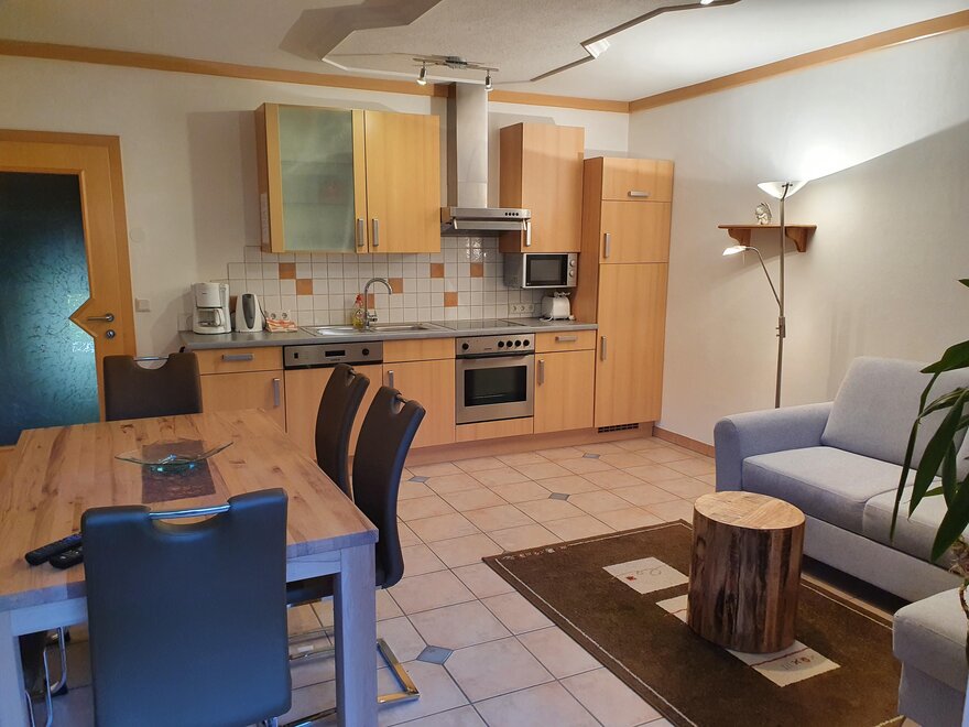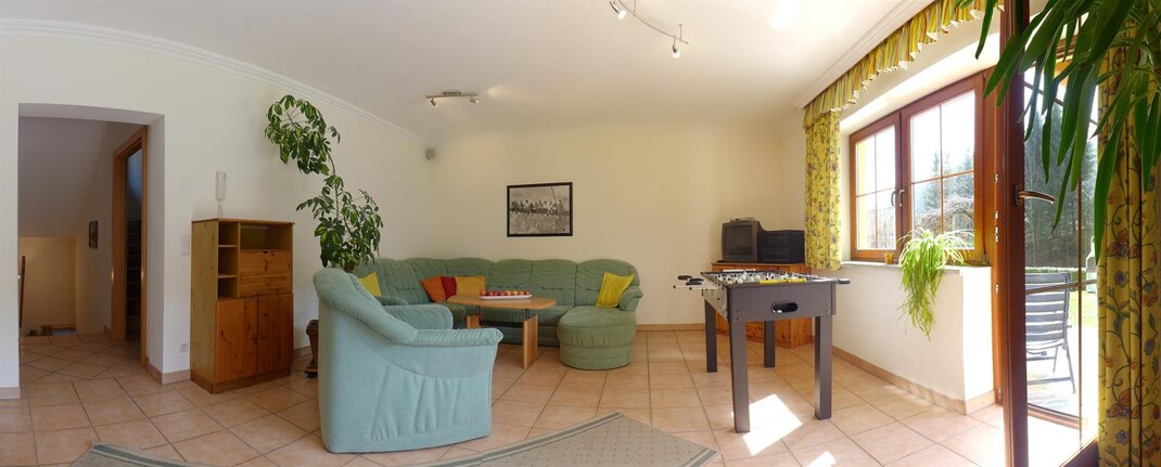 Apartment Doreen is for 6 people. Two seperate sleepingrooms, big bathroom with shower, bathtub, double sink, washing machine, kitchen living area, anteroom, couch for sleeping for two people, balcony. Each room with tv and internet. Playground, table tennis and trampoline.