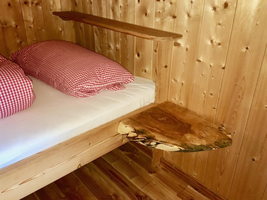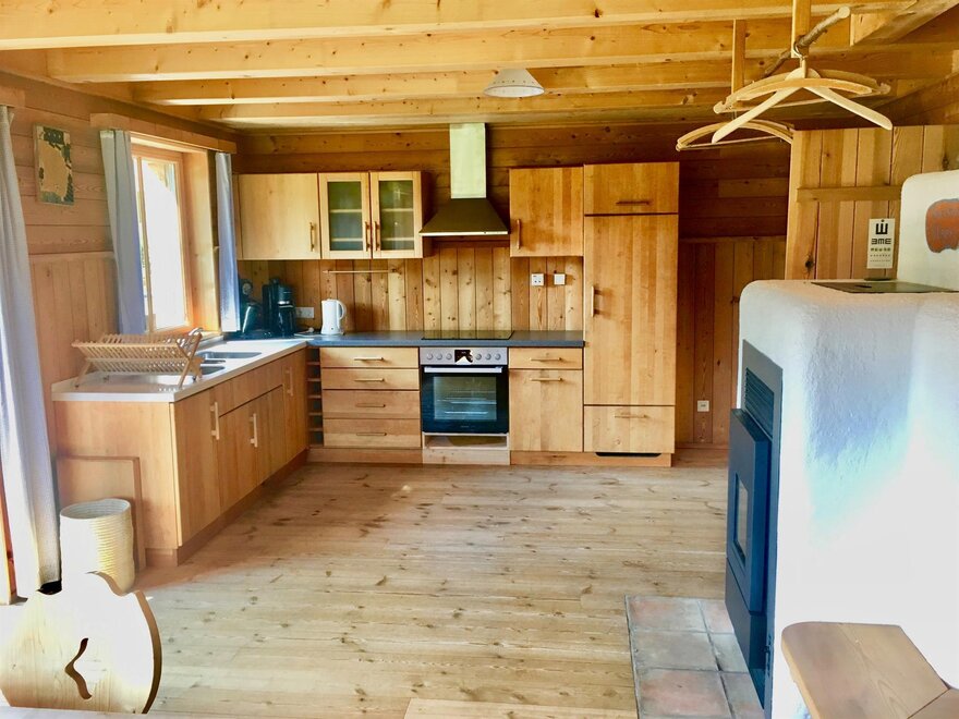 Quiet and sunny located on the southern slope of Kammspitz. Wooden house built with ecological and natural materials. Spacious terrace facing west. Ideal as a year-round starting point for activities such as hiking, mountain biking, climbing tours, alpine skiing, cross-country skiing, or paragliding. The ground floor features a kitchen, dining area, sanitary facilities, and one bedroom. Additional bedrooms are located in the attic. Simple furnishings.