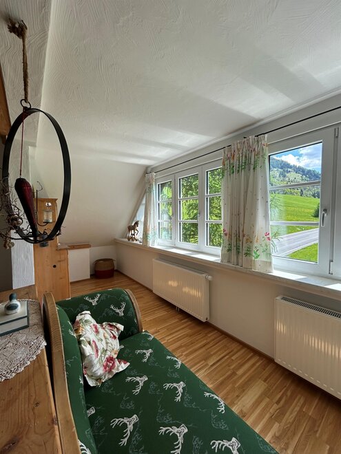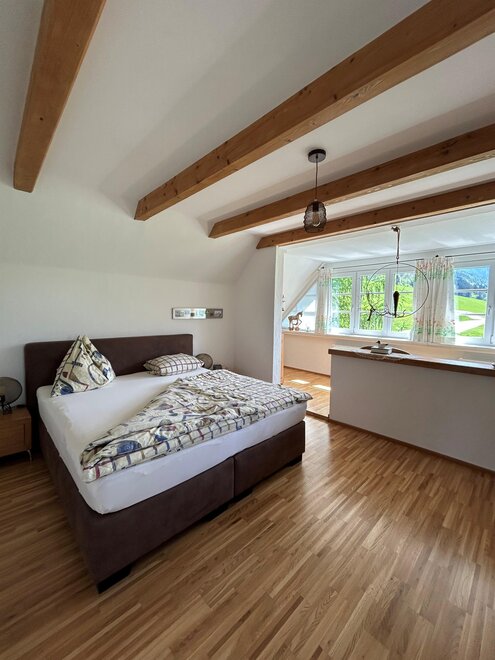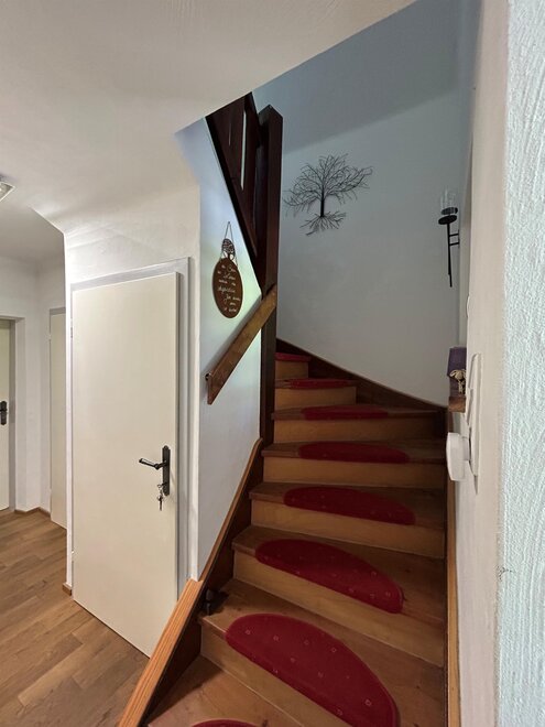 A fully equipped kitchen with dining area and a cozy living room with TV invite you to linger. Two bedrooms await you on the upper floor - one of which is particularly spacious with lots of windows and its own balcony for sunny mornings and starry nights.